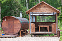 Рядом с домом размещена баня-бочка и Чан (можно арендовать дополнительно).