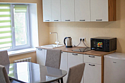 В вашем распоряжении будет две комнаты: гостиная с двухместным раскладным диваном и мини-кухня с холодильником, чайником, электрической плитой и СВЧ-печью, а также набором посуды. Отдельная спальня порадует вас уютом и комфортом. На веранде с панорамным окном вы сможете насладиться живописными видами. В домике также есть душ и туалет, а печь-камин добавит уюта в ваше пребывание.