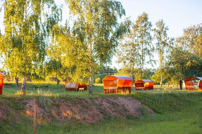 На территории кемпинга есть свой магазин с местными фермерскими продуктами. Мясо, молочная продукция, сезонные ягоды. Лучше позвонить на базу заранее (за день до приезда) и заказать интересующие вас продукты.