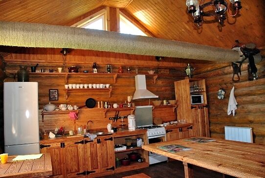 В гостевом доме имеется кухня для самостоятельного приготовления еды. На территории оборудованы летняя кухня и беседка (мангал, казан, дрова, шампуры). На базе работает подсобное хозяйство, производящее продукты: молокопродукты, куриные яйца, мясо, свежие овощи, зелень летом, домашние овощные заготовки зимой.
