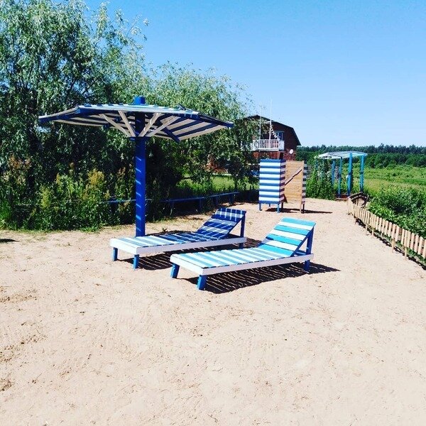 Инфраструктура: лежаки, зонтики, шезлонгиПесчаный пляж