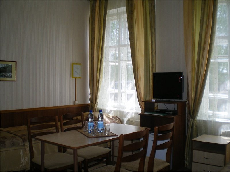 Уютно разместиться здесь можно в 15 разноместных номерах основного корпуса. Номера имеют все необходимое для удобного проживания: душевые кабины, санузел, телефон, ТВ со спутниковыми каналами, телефон, холодильник. В номерах повышенной комфортности предусмотрена дополнительная мебель, биде.
