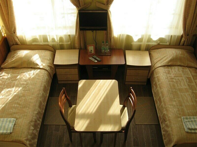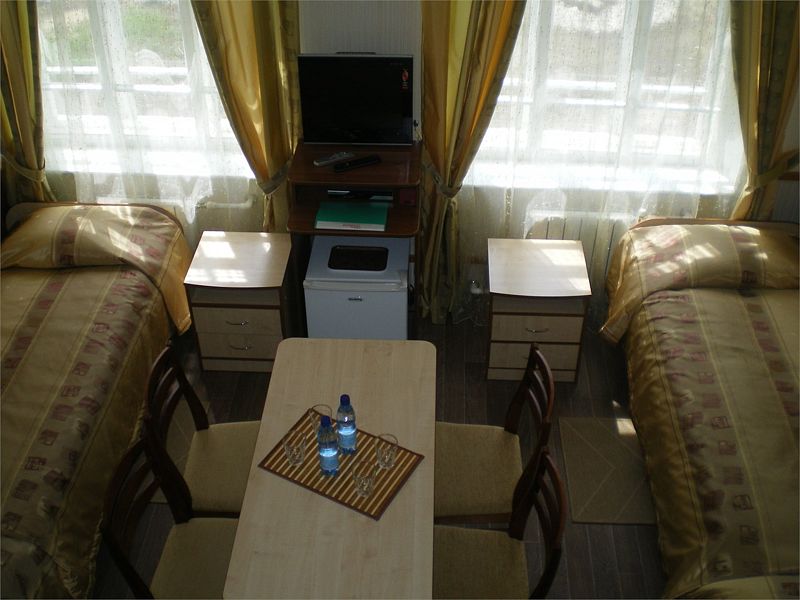 Стандартный двухместный номер эконом-класса Планировка номера привлекательна для людей, предпочитающих бюджетный вариант отдыха. Бесплатное пользование комфортными душевыми в шаговой доступности В номере две одноместных кровати прикроватные тумбочки стол стулья ТВ wi-fi шкаф для одежды В ванной комнате раковина унитаз жидкое мыло 2 полотенца стаканы