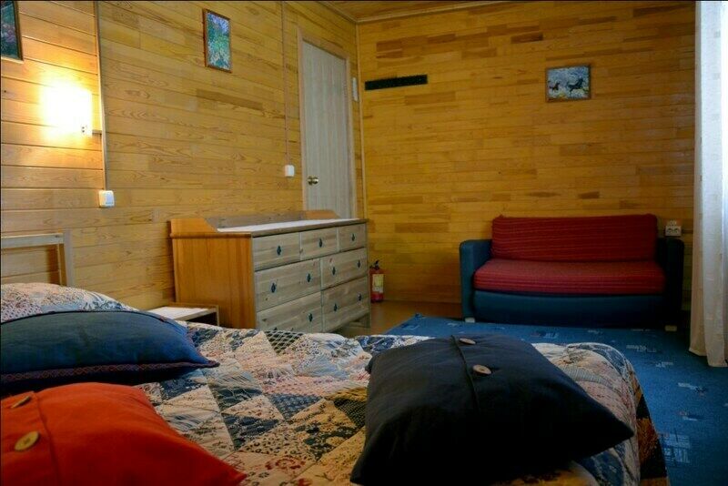 Однокомнатный 4х местный номер на 1 этаже коттеджа с отдельным входом. Спальня-альков (большая удобная кровать-топчан на ковровом подиуме) Коттедж находится в одном из уютных уголков «Раздолья» рядом с пляжем на реке Арда . Красивые виды на речную долину и цветущий розарий, большой балкон с панорамой видов «Раздолья», удобное зонирование помещений, вся необходимая мебель и большой санузел делают этот номер привлекательным как для отдыха вдвоем , так и для семейного отдыха. Во дворе дома имеется стационарный кирпичный мангал и мебель для отдыха, полянка с цветами и девичьим виноградом. В стоимость номера включены: пользование пунктом проката, пляжной зоной, спортплощадкой, дегустация народных хмельных напитков ОПИСАНИЕ: Усадьба : гриль-площадка с кирпичным мангалом , садовая мебель для отдыха, полянка с цветами и девичьим виноградом. На большом крыльце - два входа на 1й и 2й этажи коттеджа, которые являются отдельными номерами. Тамбур/прихожая: навесная полка-вешалка для одежды, скамья-сундук для дорожных сумок, кондиционер В комнате: 2х спальная кровать, диван раскладной, стол и стулья, телевизор, тумба , обогреватель, кухонный уголок (холодильник, чайник, чашки, пакетированные черный чай и сахар минеральная вода (0,5 л/чел) Балкон: столик/пепельница и скамейки для отдыха Санузел: душевая кабина, раковина, унитаз, биде, 4 больших и 4 средних полотенца, полотенце для ног, жидкое мыло.