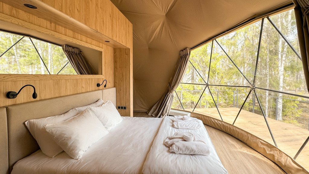 Двухместный тент с видом на сад двуспальная кровать