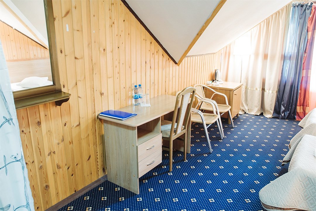 Однокомнатный двухместный номер с двумя отдельными кроватями. Площадь номера — 16 кв.м. В номере: спальная комната, туалетная комната с ванной. Оснащение номера: холодильник, фен, туалетные принадлежности, спутниковое TV, ср-ва личной гигиены (гель/шампунь), эл.чайник, чайные чашки на 2 персоны, стаканы, бесплатный Wi-Fi в номере и в общественных местах.Услуги и удобства