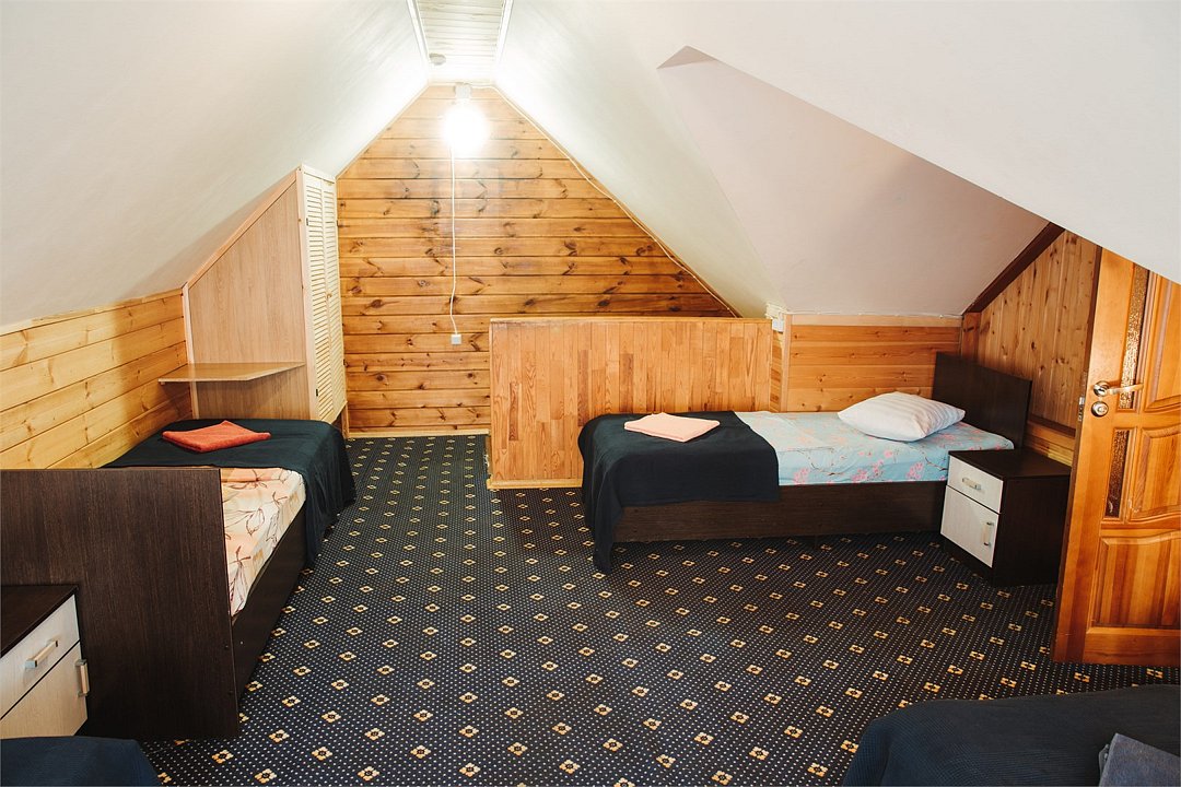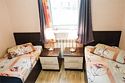 Однокомнатный номер с четырьмя односпальными кроватями. Площадь номера — 30 кв.м. В номере: прихожая, спальная комната, туалетная комната с ванной. Оснащение номера: фен, туалетные принадлежности, спутниковое TV, ср-ва личной гигиены (гель/шампунь),холодильник, эл.чайник, чайные чашки на 4 персоны, стаканы, бесплатный Wi-Fi в общественных местах. По запросу в номере устанавливается детская кроватка (до 5 лет).Услуги и удобства