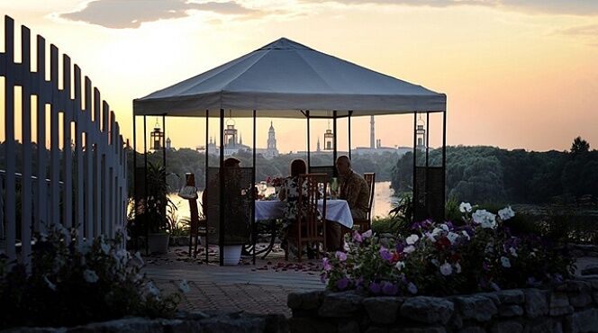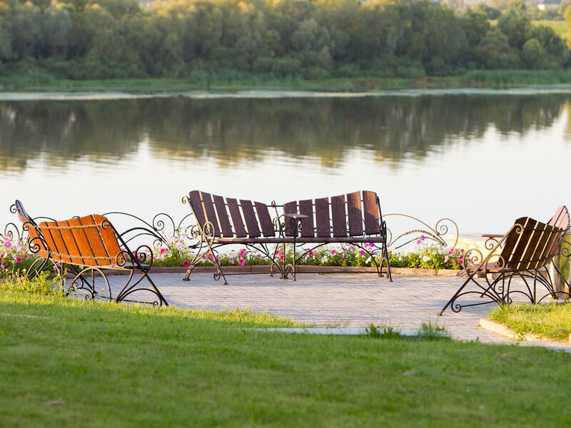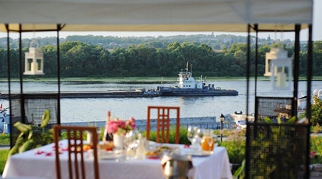 Путешествие с паройНеплохое место для спокойного отдыхаОтель расположен фактически за городом при выезде из Коломны, на берегу Оки. Большая территория, хотя выглядит не очень ухоженно. Есть несколько беседок для аренды и летнее кафе. Сам отель состоит из жилого здания и здания ресторана, соединенных крытым переходом. Есть несколько площадок для парковки, СПА-центр, есть возможность отметить торжество или свадьбу для большой компании.