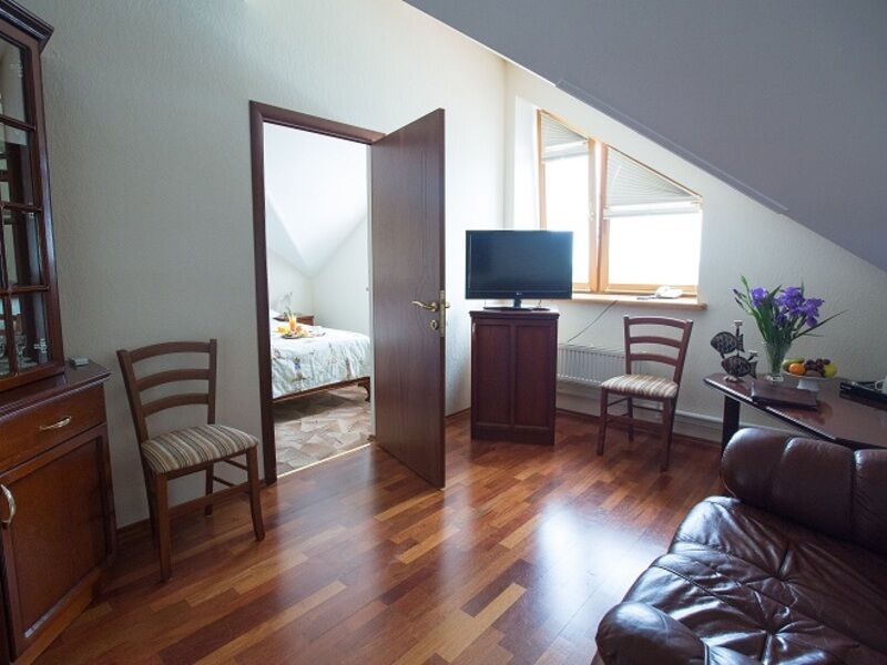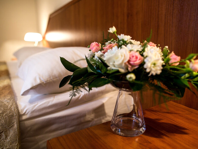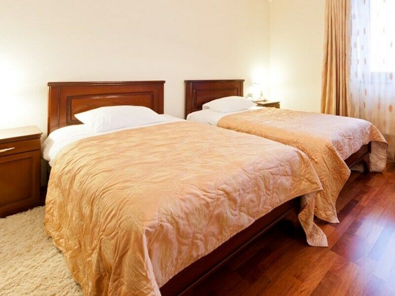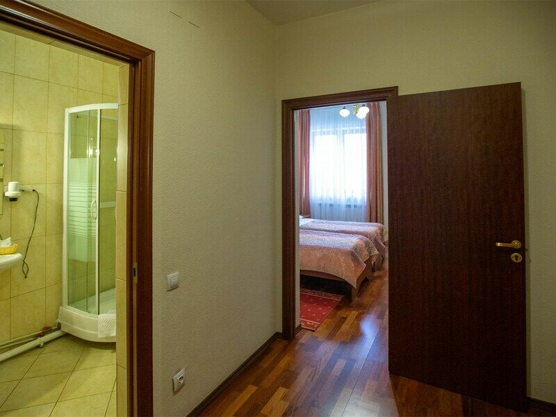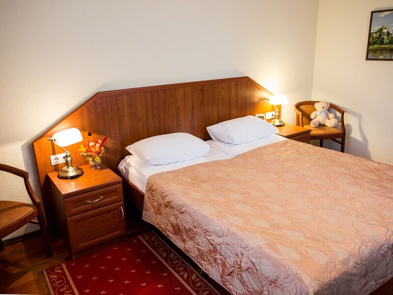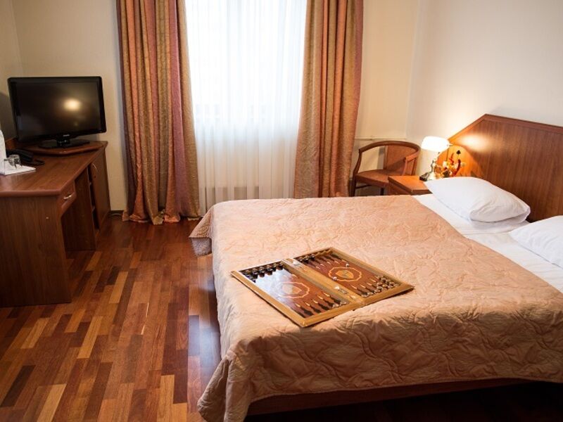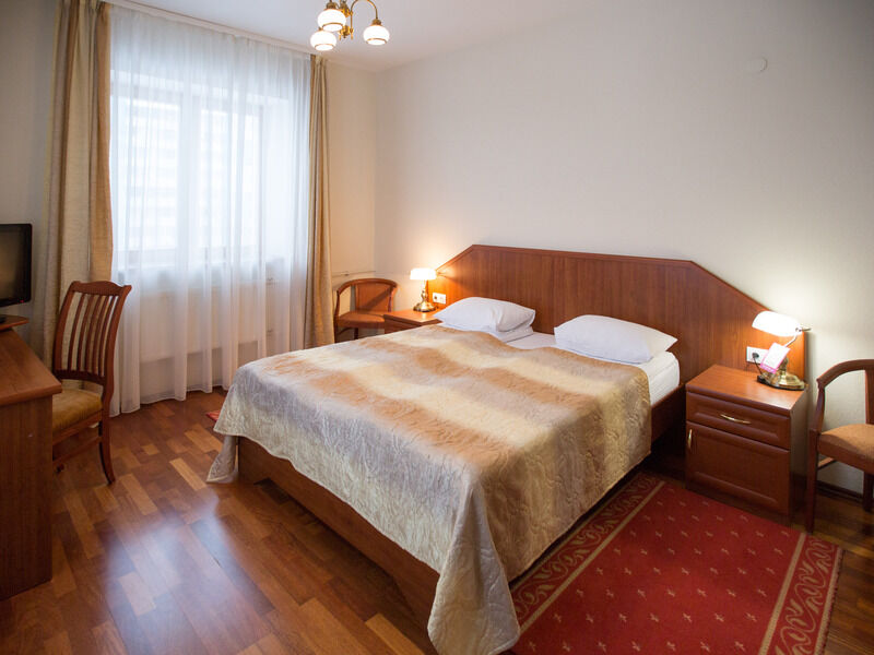 Современный жилой корпус отеля расположен на благоустроенной территории площадью два гектара. Гостей ожидают двухместные номера категории Стандарт, Полулюкс, Люкс, а также вместительные четырехместные апартаменты. Номера укомплектованы мебельным гарнитуром, стандартным набором бытовой техники, санузлы оснащены душевой кабиной, в номерах повышенной комфортности наряду с душем есть ванна.