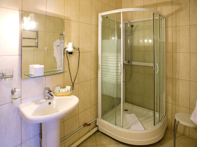 Санузел,душевая кабина,мини-бар,телефон,ТВ,фен.