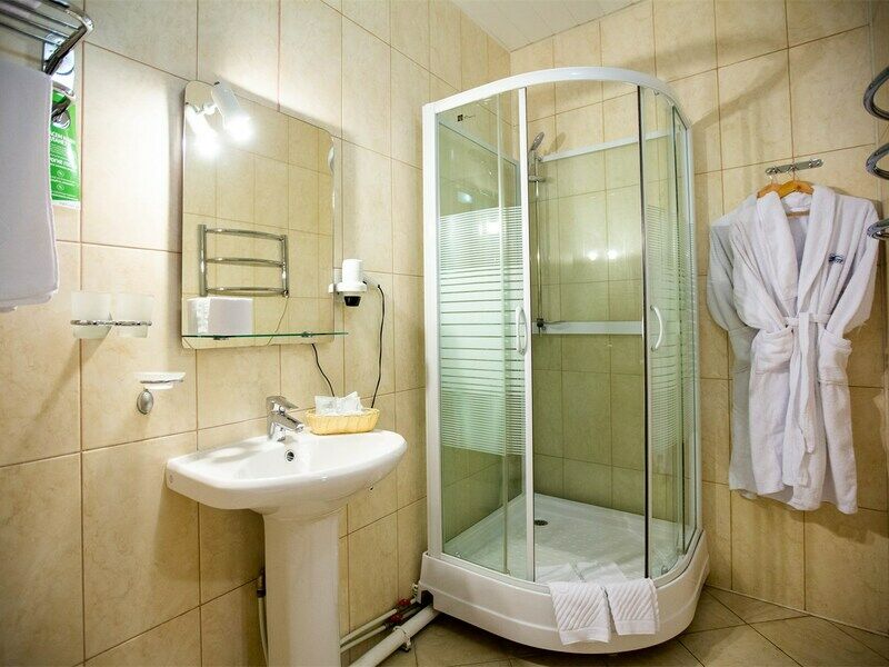 Санузел,душевая кабина,мини-бар,сейф,телефон,ТВ,фен.