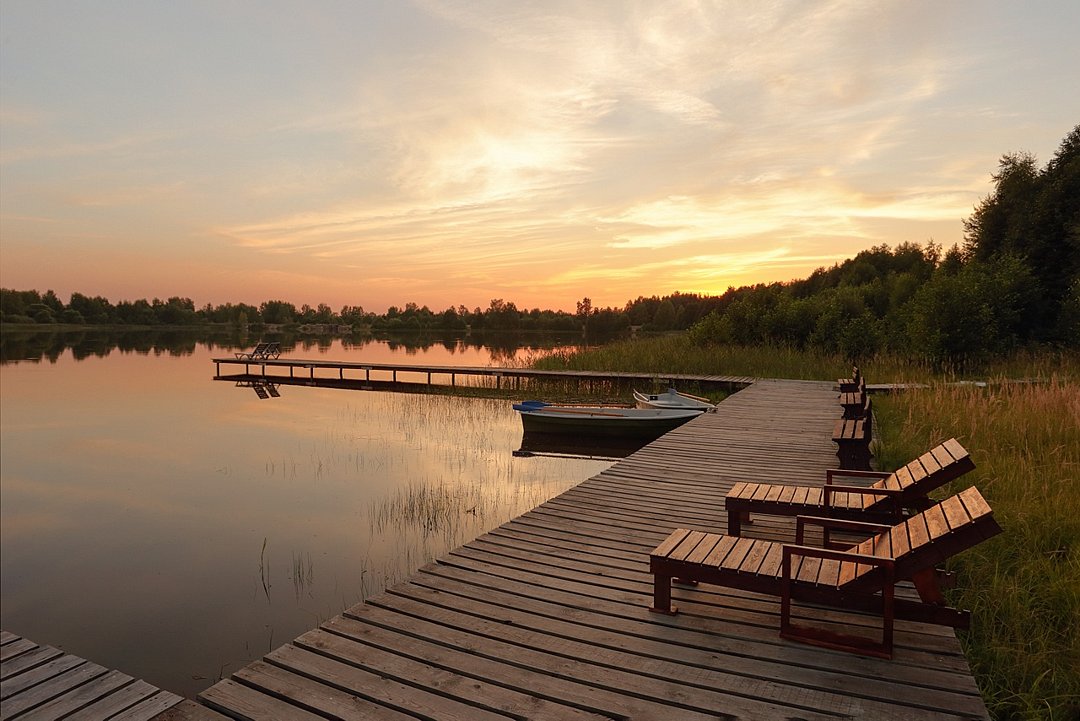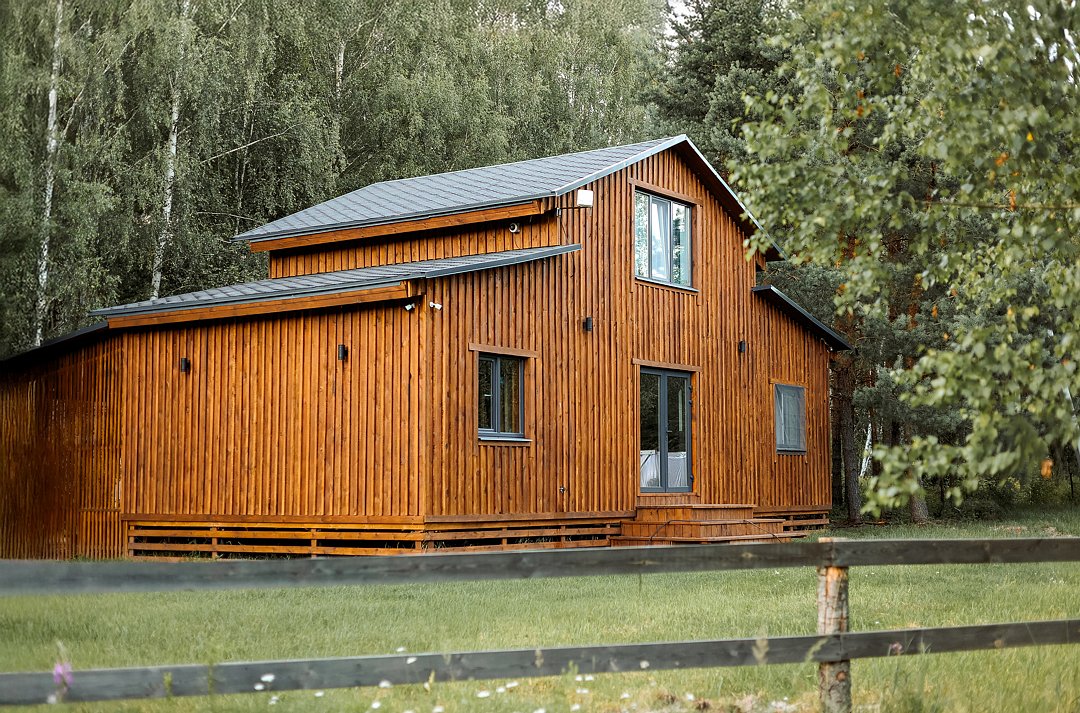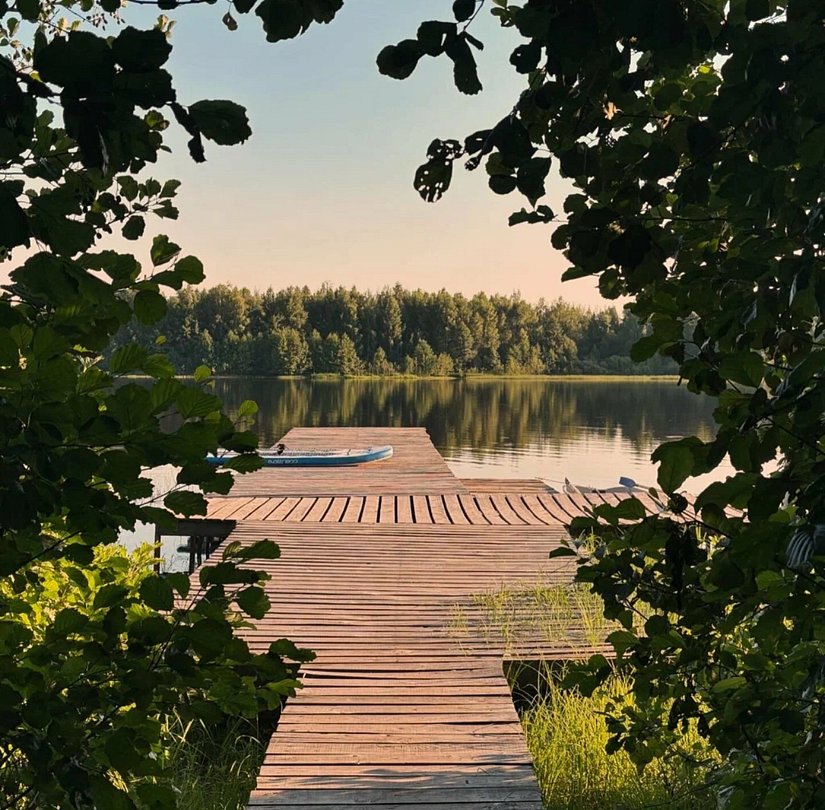 Домик находится на территории семейной фермы, в окружении соснового леса и на берегу водоёма.