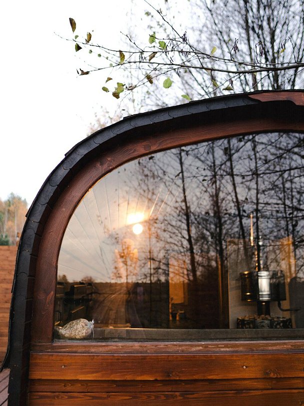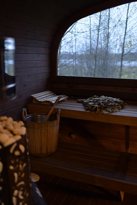 На территории А-фермы можно посетить баню с панорамным видом на реку. Внутри вы почувствуете себя максимально расслабленно, потому что здесь уходят все городские заботы, остается только спокойствие, тепло, аромат дерева и березовых листьев.