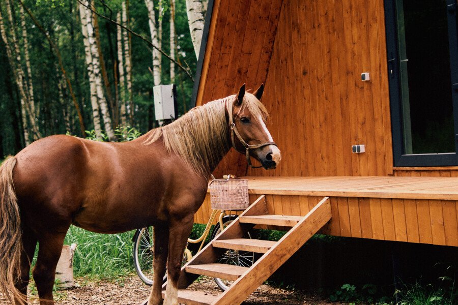 На A-Ferma вы обретете спокойствие и отдохнете от городского шума и проблем. Рядом с уютными треугольными «А-домиками» располагается ферма, где живут куры, гуси, утки, лошади, корова и козы.