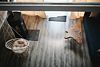 На кухне: микроволновка, плита, чайник, станция Алиса, раковина и кран с питьевой водой, посуда необходимая для готовки, тарелки, чашки, бокалы, чай, кофе, гейзерная кофеварка, барная стойка и барные стулья.