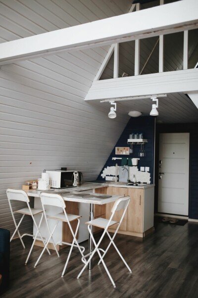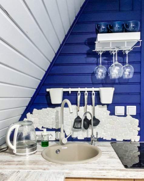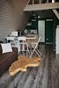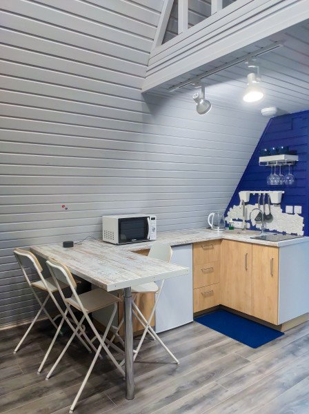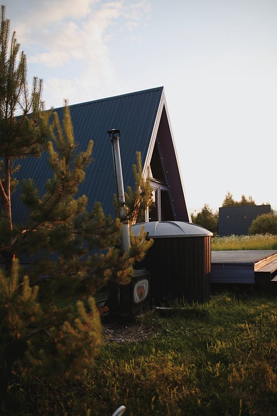 Каждый домик подходит для круглогодичного проживания. Камин создаст уют и тепло, теплый пол поможет его поддержать, плюс есть пледы и тапочки.