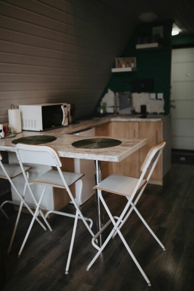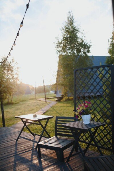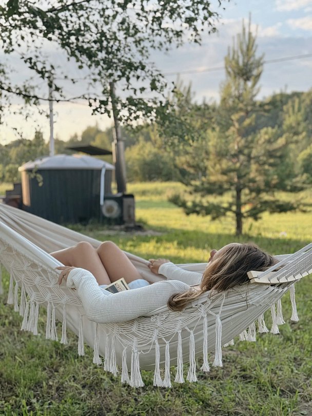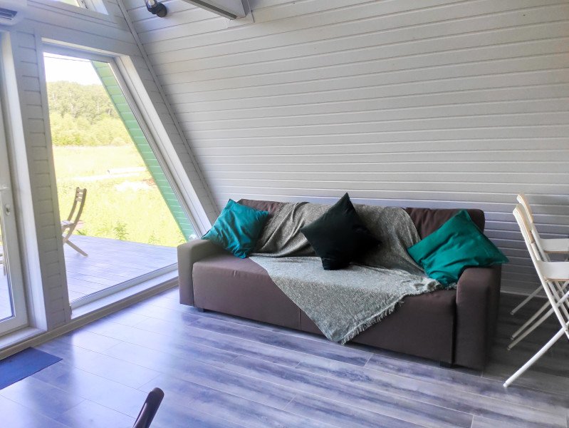 В каждом домике 4 спальных места, матрас на 2 этаже и раскладной диван на первом. Дополнительное место возможно, но это раскладушка, поэтому комфортный отдых на ней мы обещать не сможем.