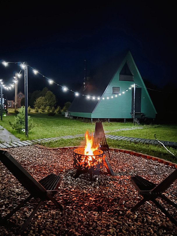 В каждом домике установлен панорамный камин, дрова или брикеты для растопки камина предоставляются на несколько топок, больше за дополнительную плату.