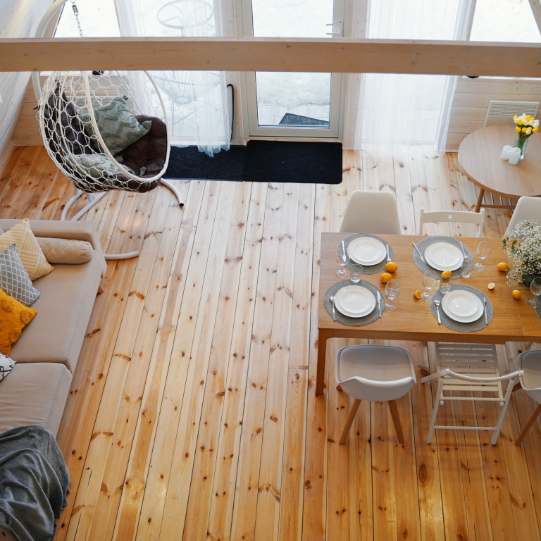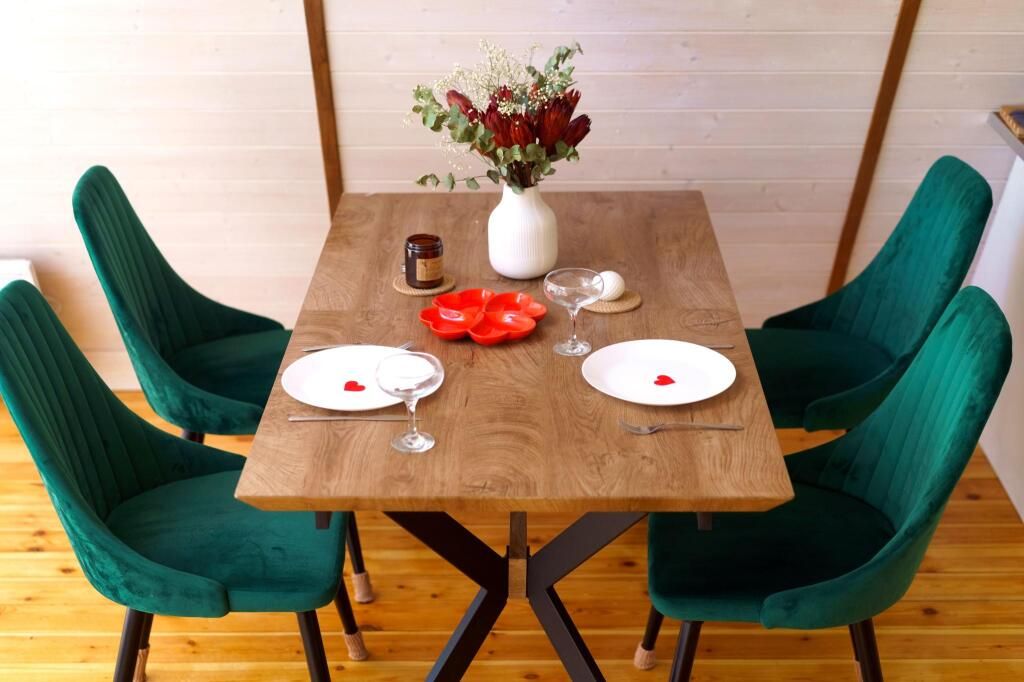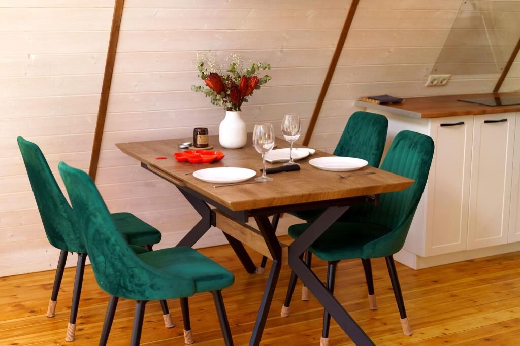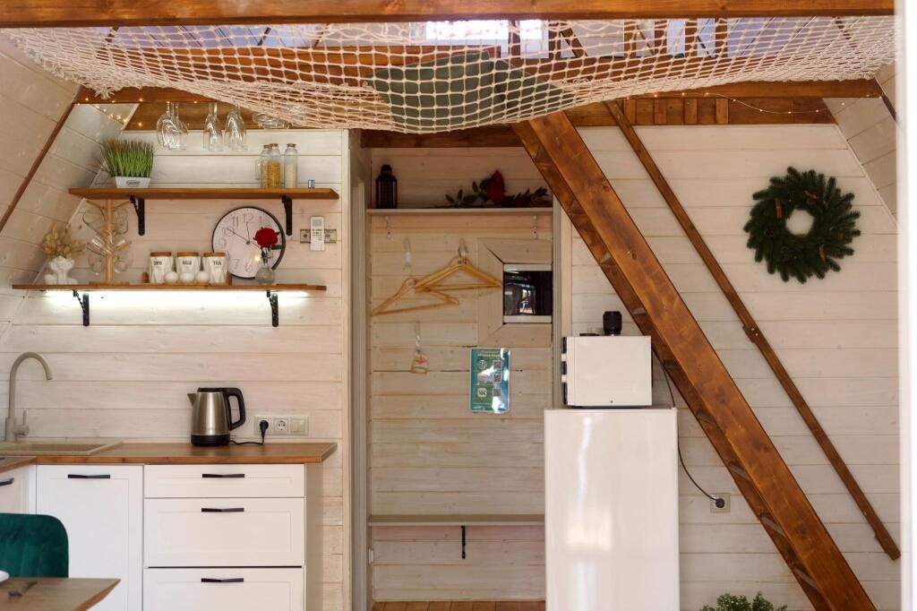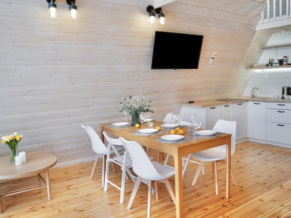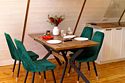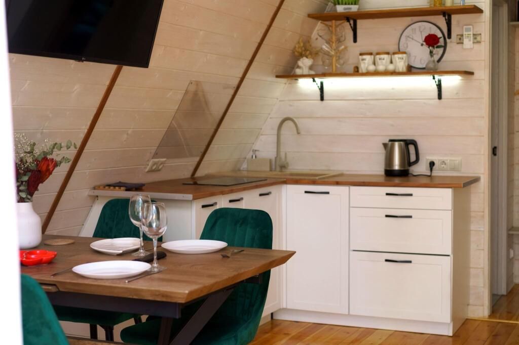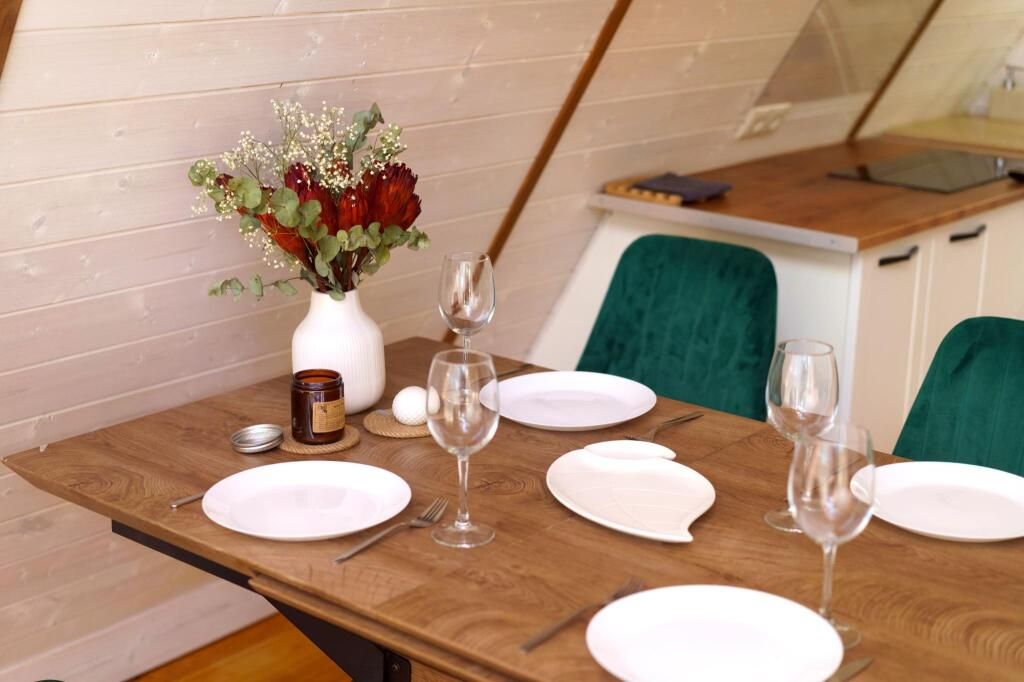 Каждый домик находится на закрытой ухоженной территории с приватной зоной отдыха, личной баней на дровах, горячей купелью фурако, песочницей и мангальной зоной. Мангал с крышей, поэтому в любую погоду можно приготовить блюда на огне. В каждом доме полностью оборудованная кухня. В домике Янтарь и Изумруд 6 спальных мест – идеально как для двоих гостей, так и для большой семьи. В домике Панорама 4 спальных мест идеально для двоих гостей и двумя детьми.