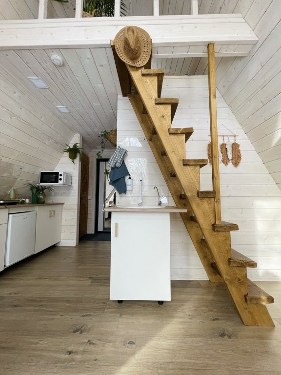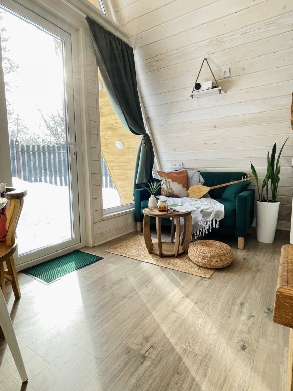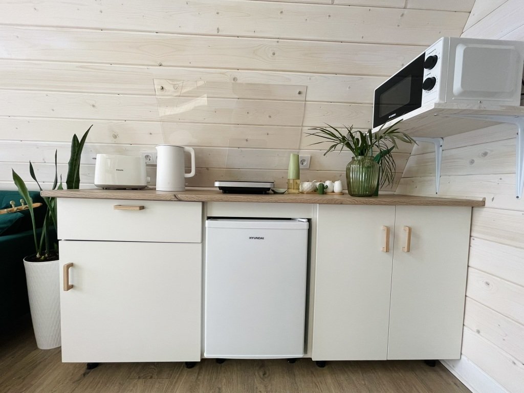 В коттедже имеется двуспальное место 160х200 и диван 120х195, гостям предоставляется постельное бельё и полотенца, ортопедический матрас. Имеется видео-проектор, мангал, настольные игры, фен, шампунь, гель для душа, тапочки, мыло, зубные наборы, кухонная техника и посуда — чайник, тостер, микроволновая печь, варочная панель, мини-холодильник, питьевая вода, тарелки, приборы, посуда для готовки а также чай и кофе.