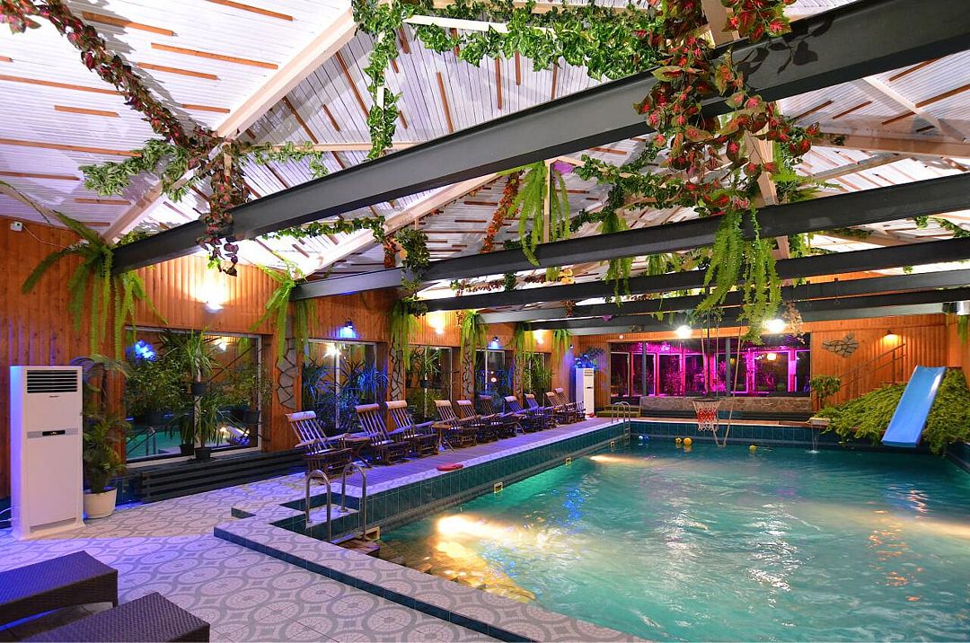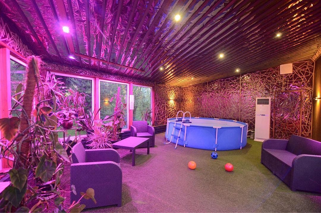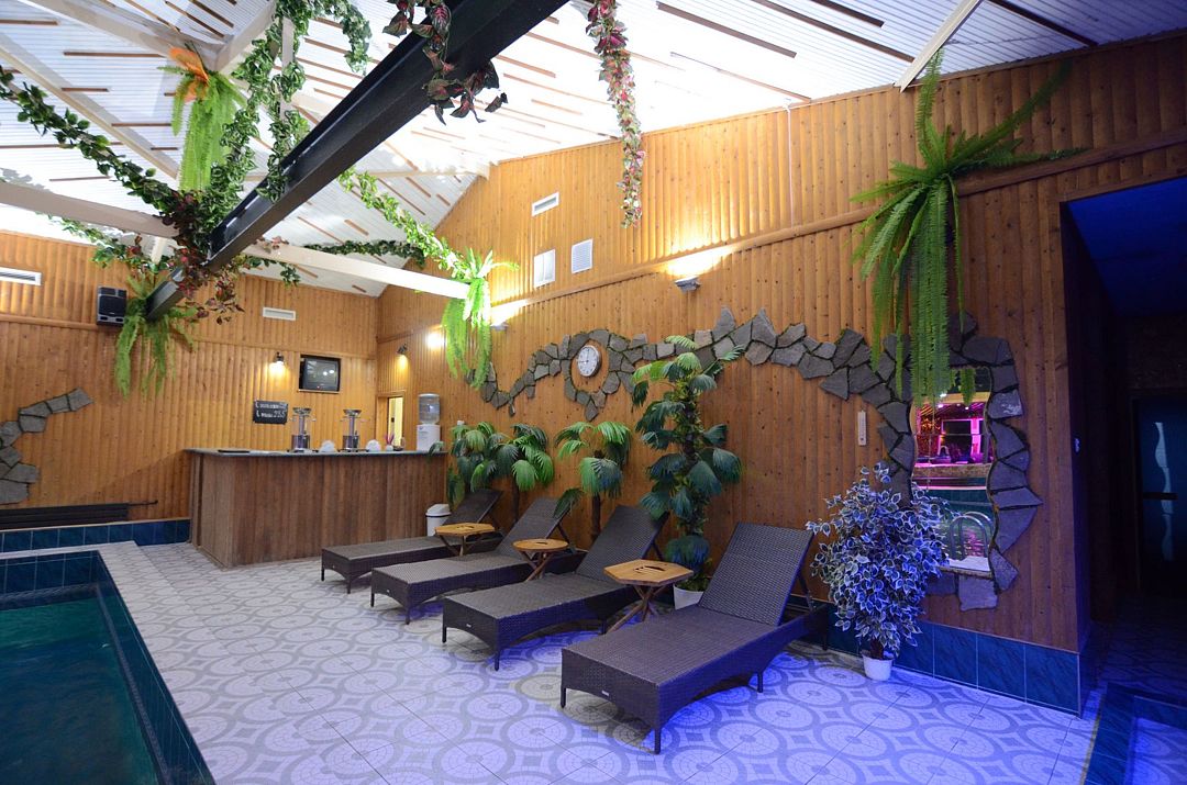 - крытые плавательный бассейн и "лягушатник" (махровые полотенца, шампунь, гель) 1 час по предварительной записи, летний пляж с деревянным настилом (лежаки, кресла, зонты, столы), бар (морс, компот и минеральная вода) (10-00 / 21-00);