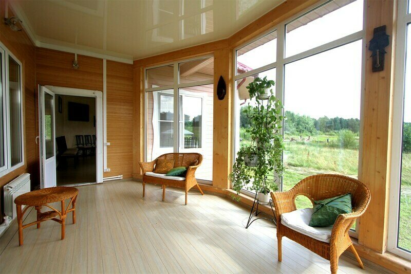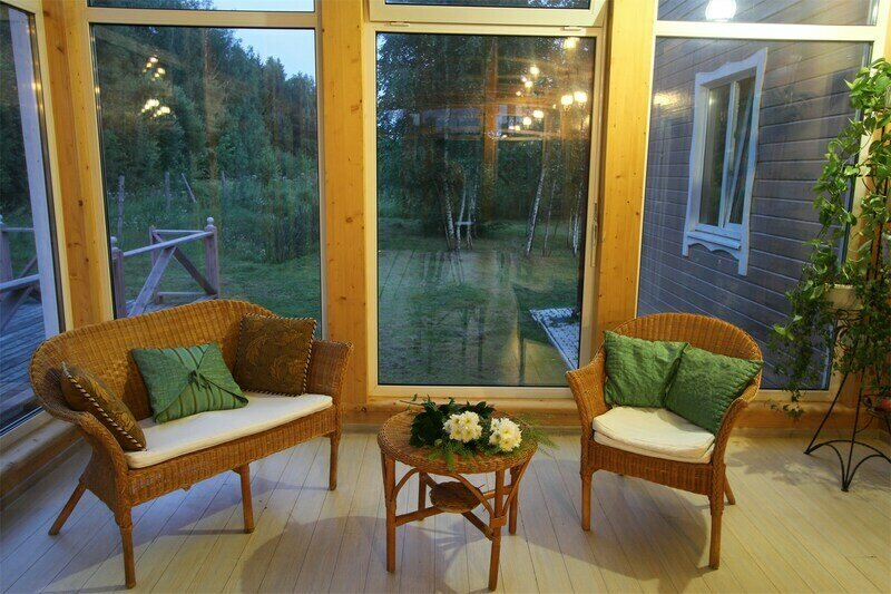 - Теплая веранда с плетеной мебелью