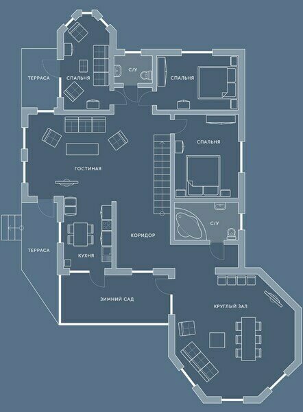 - Большой холл с мягкой мебелью, большим обеденным столом