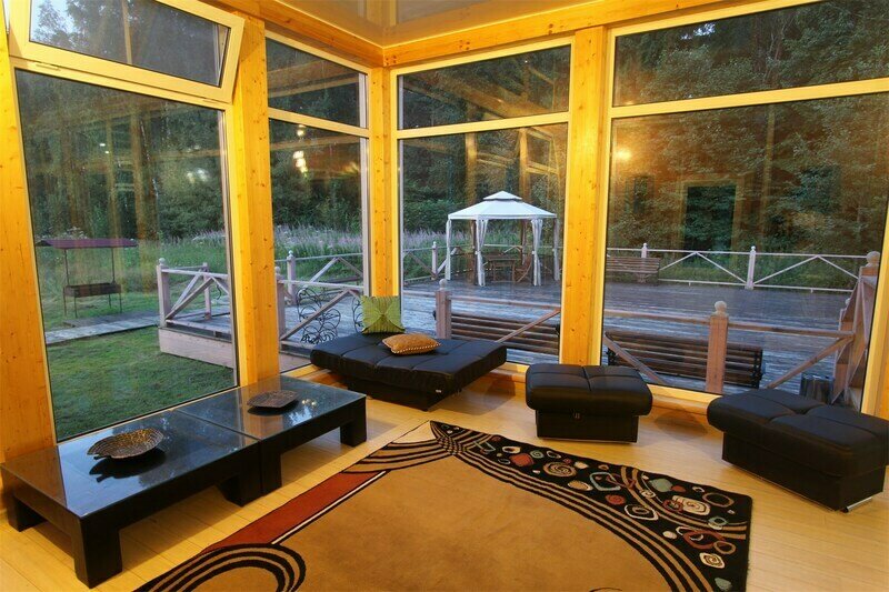- коттедж площадью 300 м2 с небольшим залом и застекленной верандой для свадеб, Дней рождения и тренингов;