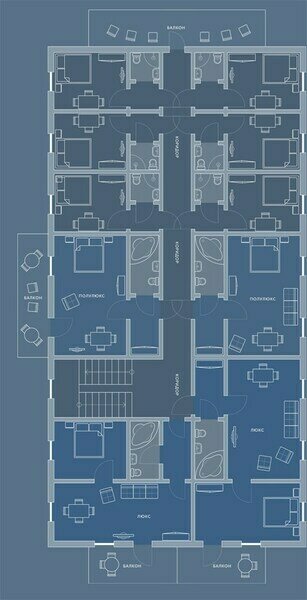 - 2 полулюкс-номера: двуспальная кровать, шкаф, стол, телевизор, санузел с джакузи