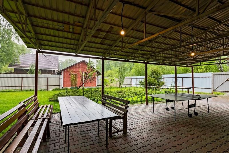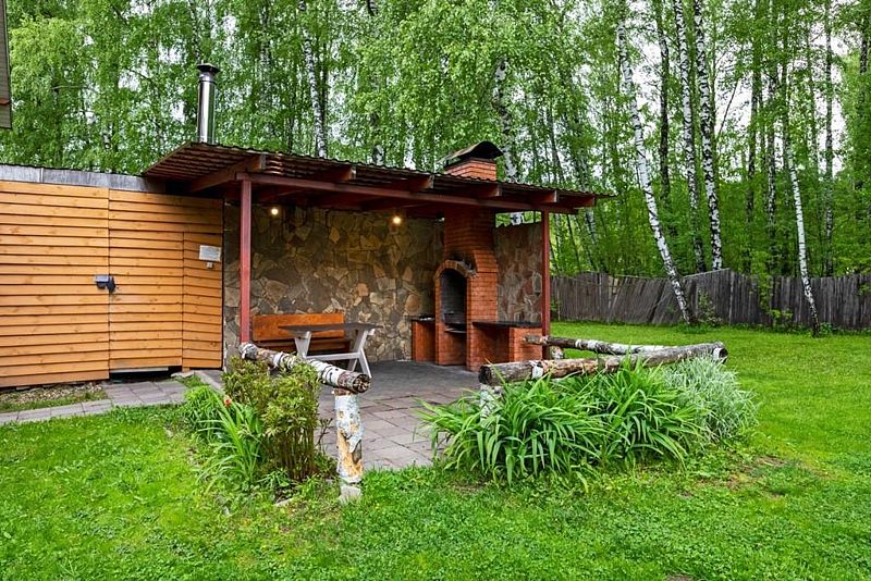 Скучно не будет, ведь в коттедже к услугам отдыхающих площадка для барбекю.