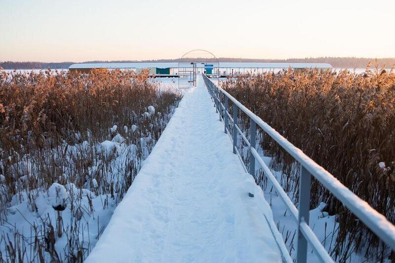 Отель — отличное место для рыбалки в Подмосковье с проживанием. Для любительской рыбалки вы можете взять в прокат гребную лодку, катамаран или рыбачить с пирса. Зимой есть удобный спуск на лед. Удочки, наживку и другие принадлежности нужно привезти с собой, отель их не предоставляет.