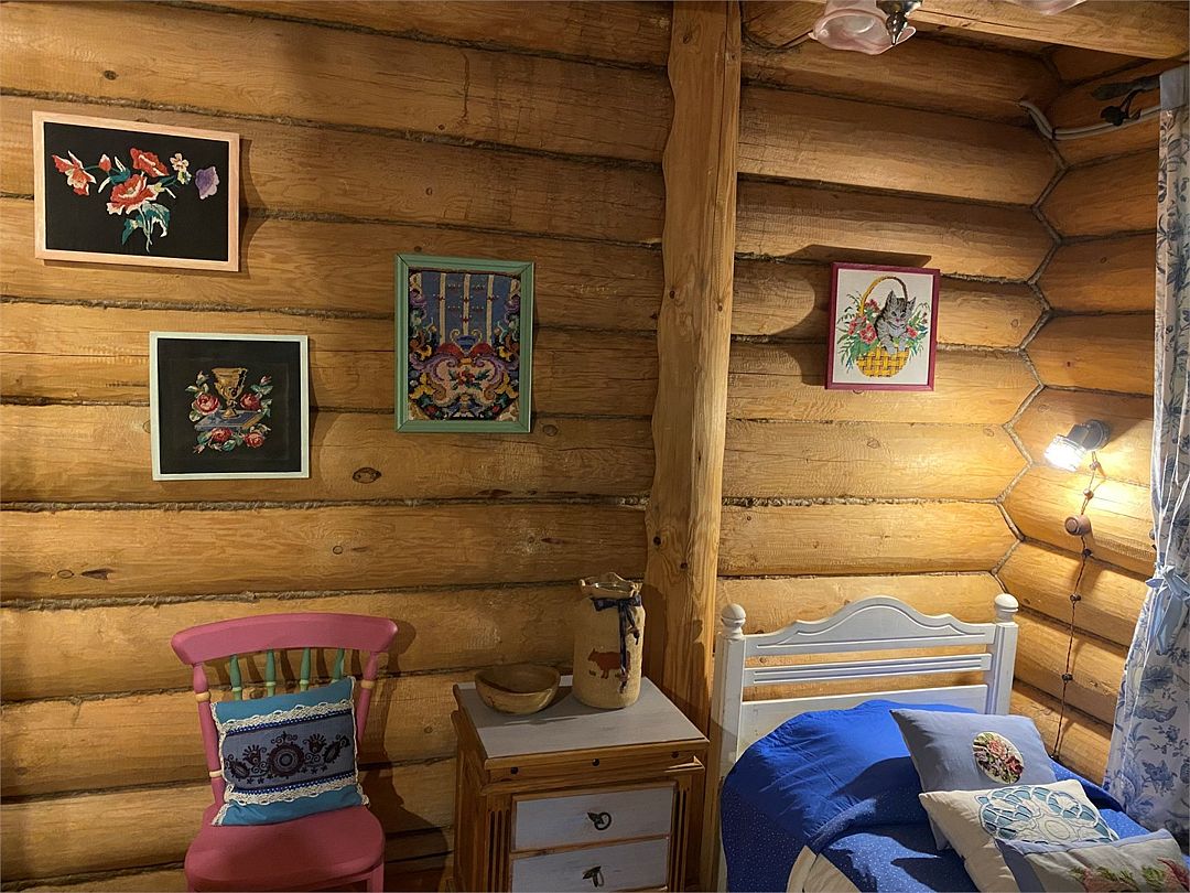 В апартаментах двуспальная кровать, две односпальные кровати, три тумбочки, стол, два стула, диван, кресло, два санузла, ванная. У апартаментов отдельный вход, своя придомовая территория и садовый камин-очаг.