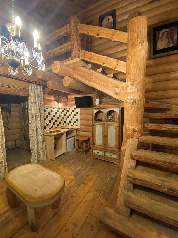 Двухуровневые апартаменты со спальней и гостиной. В апартаментах двуспальная кровать, две тумбочки, диван, кресло, два санузла, ванная, фен, халаты, тапочки. У апартаментов отдельный вход, своя придомовая территория и садовый камин-очаг.