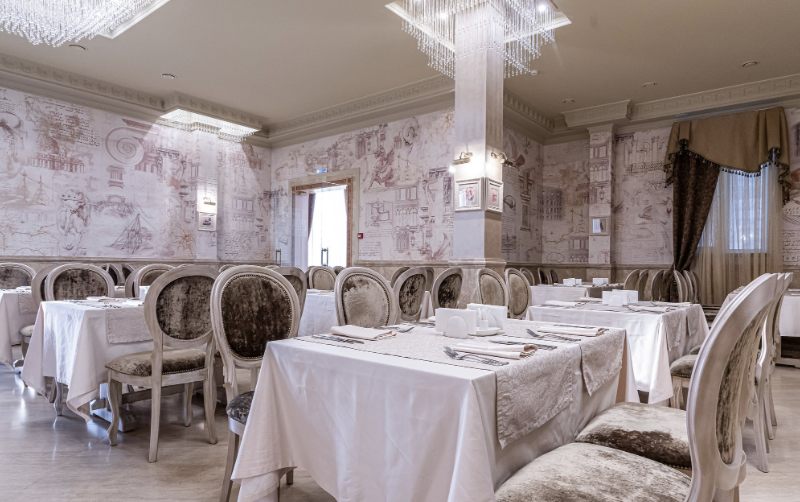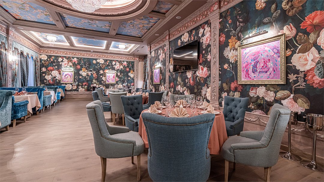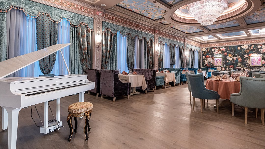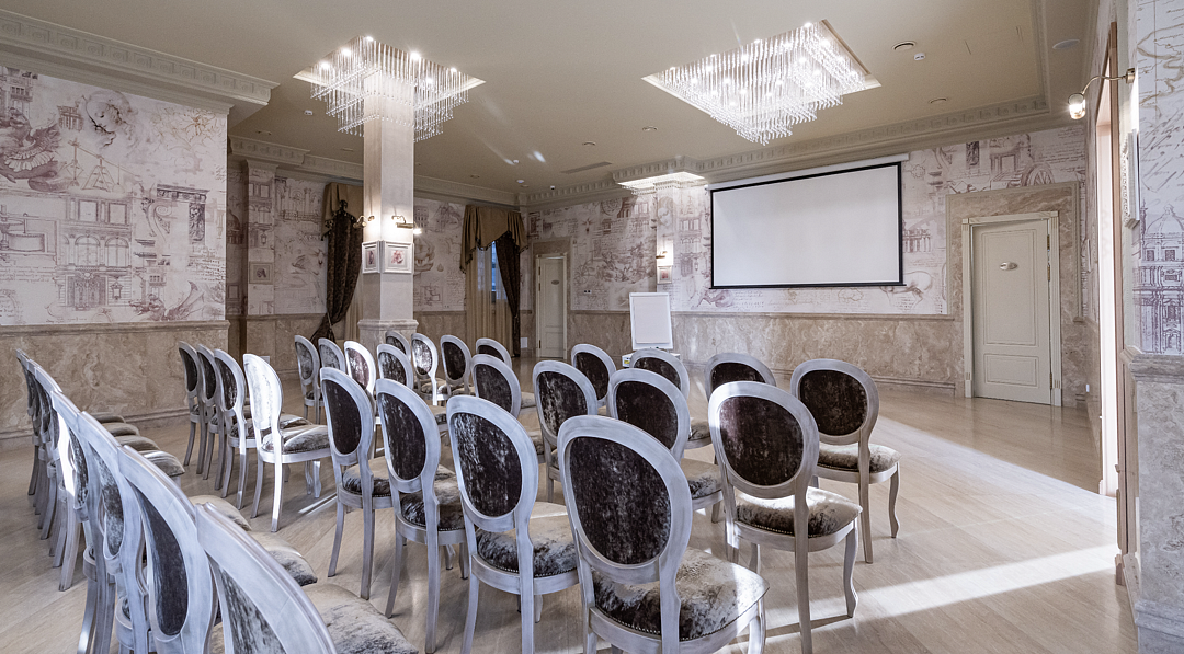 Этот светлый зал прекрасно подойдет для мероприятий различного формата: от деловых обедов до торжеств вместимостью до 60-и гостей.