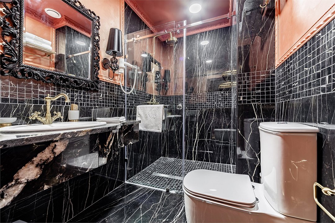 два телевизора, Wi-Fi, система климат-контроля, светильник, настольные лампы, фен, электронные замки, душевая кабина, гидромассажная ванна, дополнительный санузел, халаты, тапочки, косметические средства, кровать «Queen size», гипоаллергенное белье, стулья, шкаф для одежды, вешалки, журнальный столик, письменный стол, зеркало, две комнаты, звуконепроницаемые стены и окна, мини-бар, письменные принадлежности, чайный набор, информационная карта, меню, сейф, чайник, раковина, питьевая вода, ковровое покрытие, вид на город, вид во двор, высокие потолки, стаканы, туалетные средства, цифровое тв, диван-кровать, раскладной диван, внутренний телефон, мини-холодильник, номер для некурящихВ номере