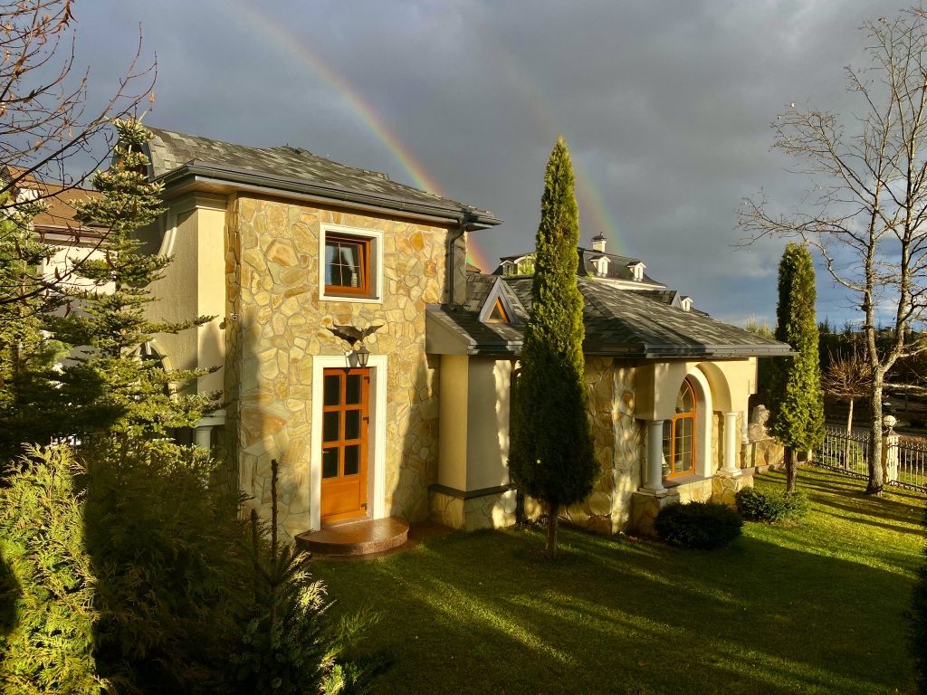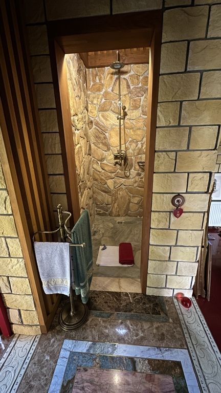 Коттеджи имеют дизайнерское оформление со смешением стилей, пол первого и второго этажа из массива натурального дуба с элементами из мрамора и гранита. Ванная комната с открытым душем и туалетом имеет каменные стены и пол с подогревом.