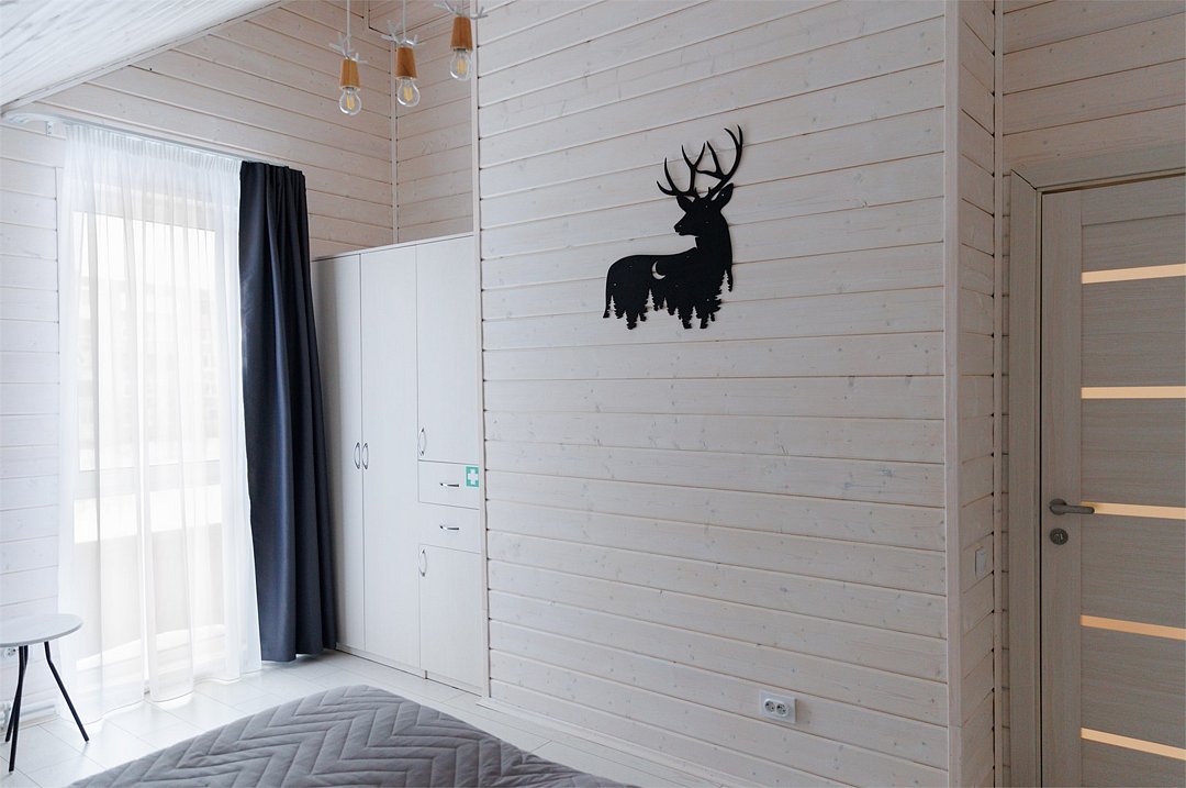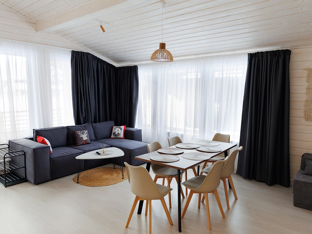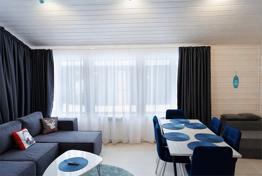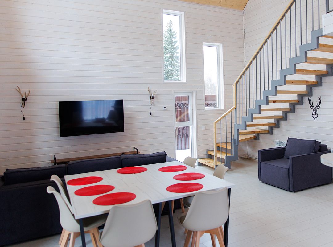 Просторный дом для отдыха семьи или дружной компании. Современный интерьер с красивым видом на лес. Дом оборудованным всем необходимым для комфортного проживания. А встроенная в дом сауна с собственным душем и предбанником сделает ваш релакс максимально полным!