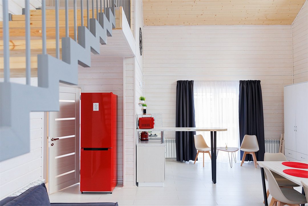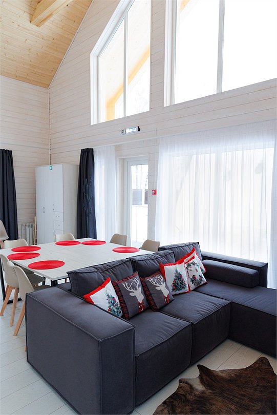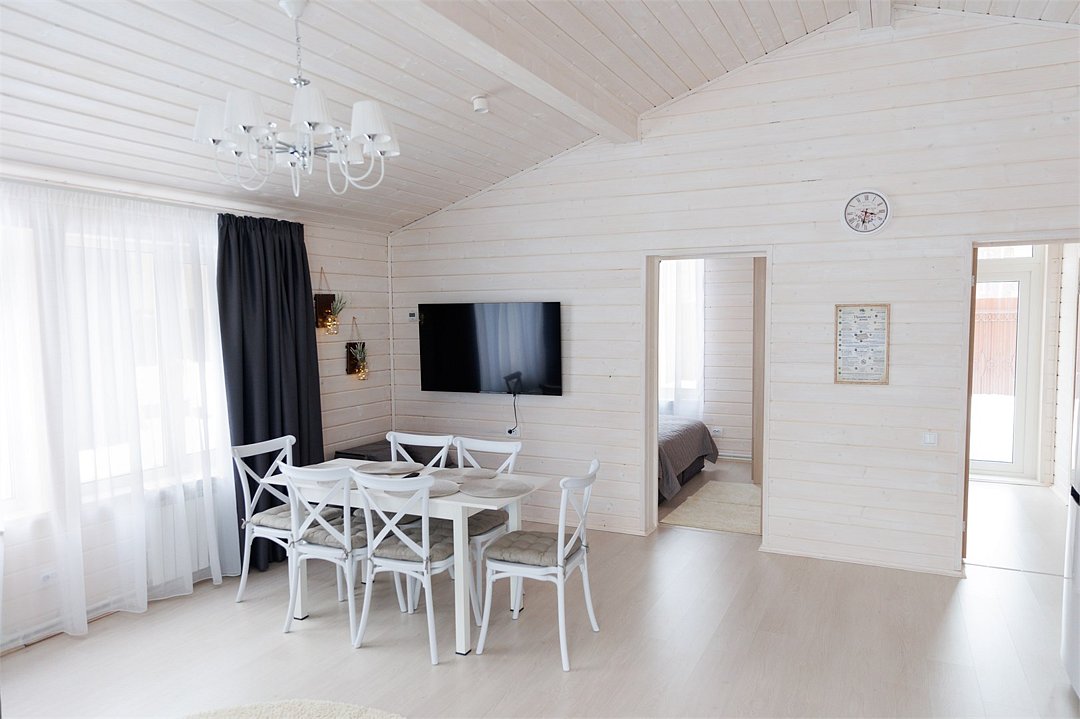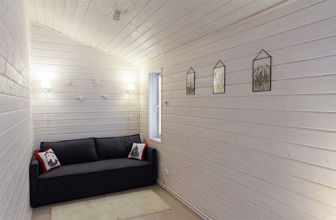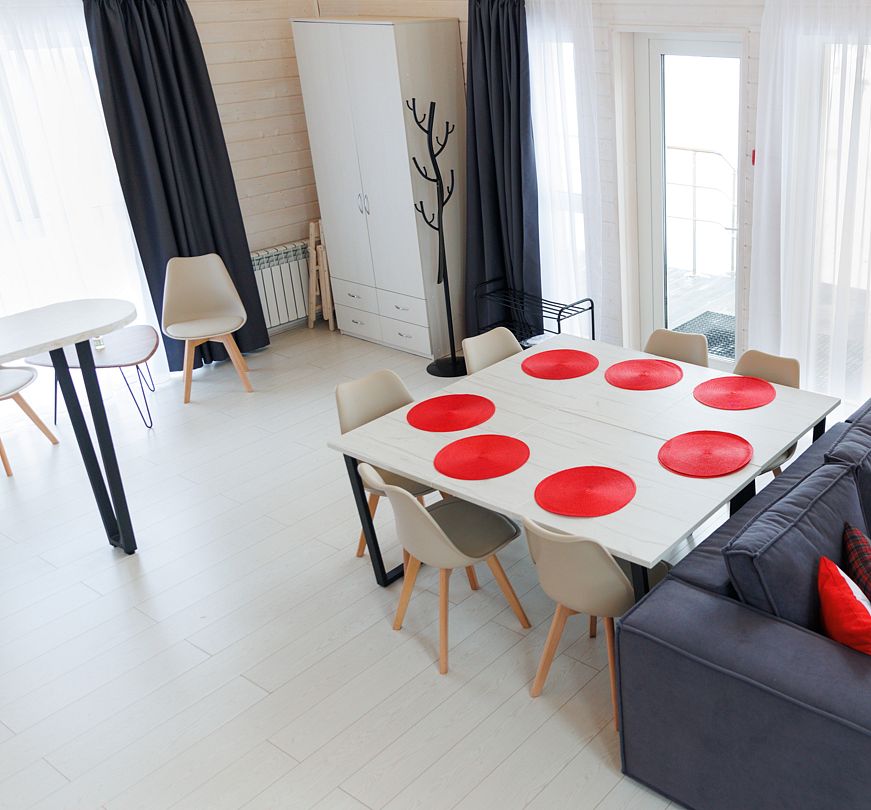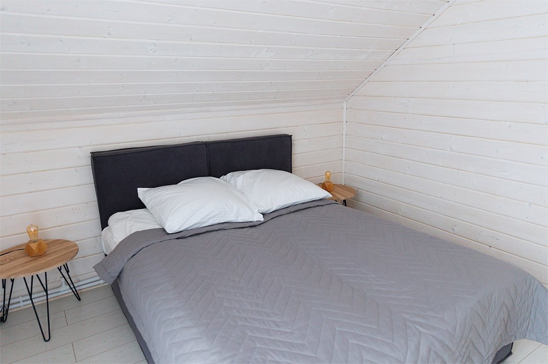 Площадь домика восемьдесят восемь квадратных метров, максимально комфортно позволяет разместить шесть человек. Максимально возможное заселение семь–восемь человек, в зависимости от выбранного дома.