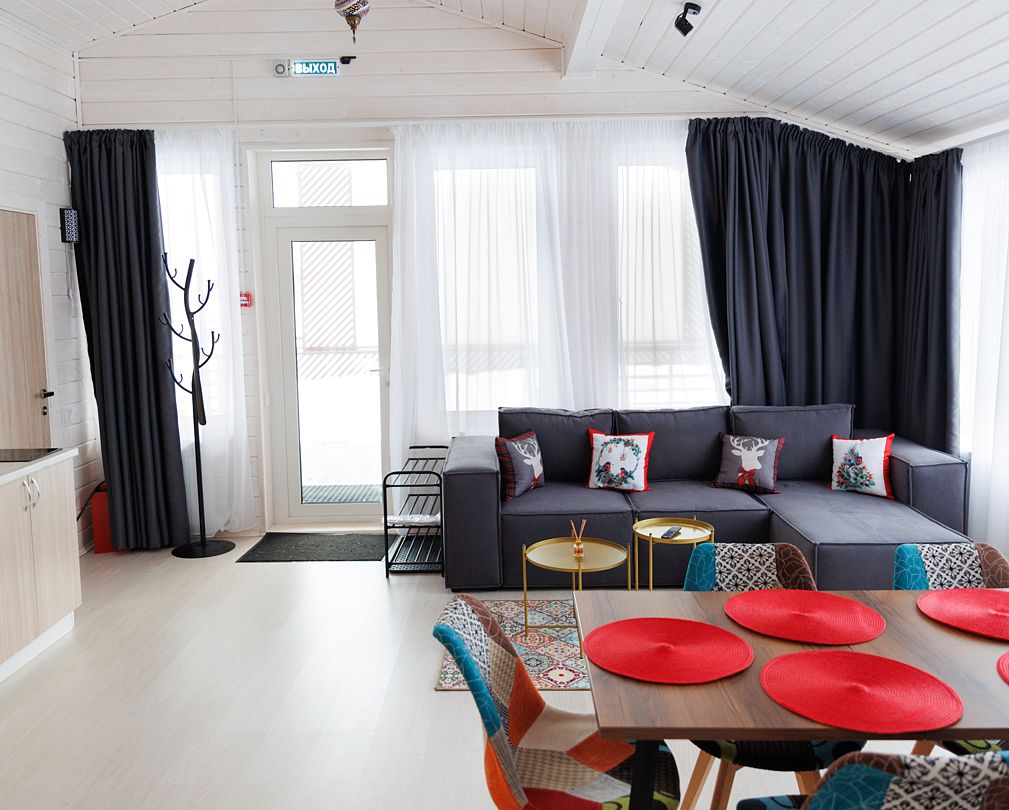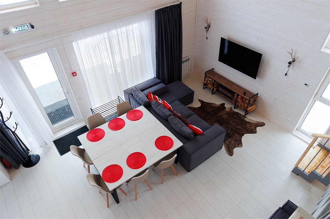 Панорамный домик прекрасно подойдет для больших семей и компаний, праздников и мероприятий, а также для любителей больших пространств, второго света и огромных панорамных окон.