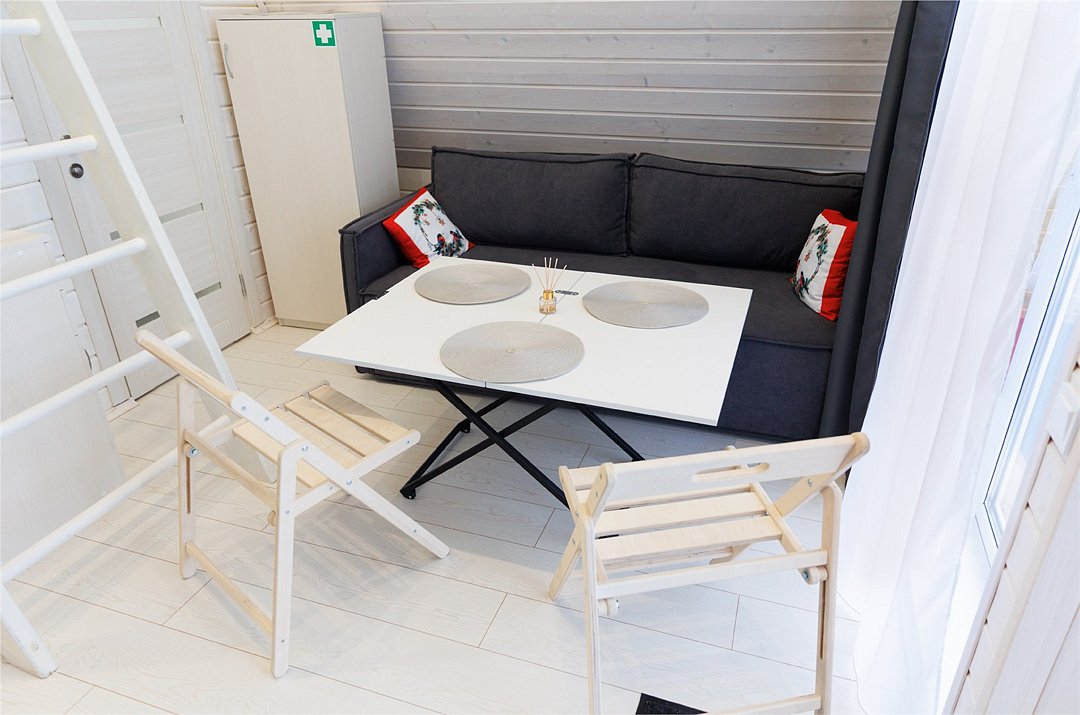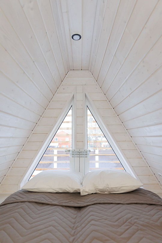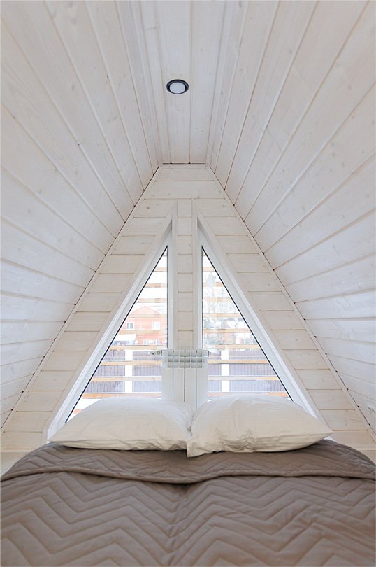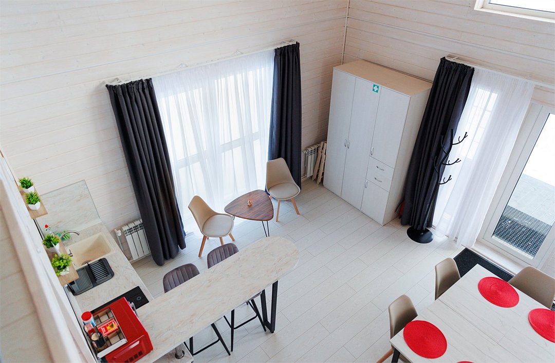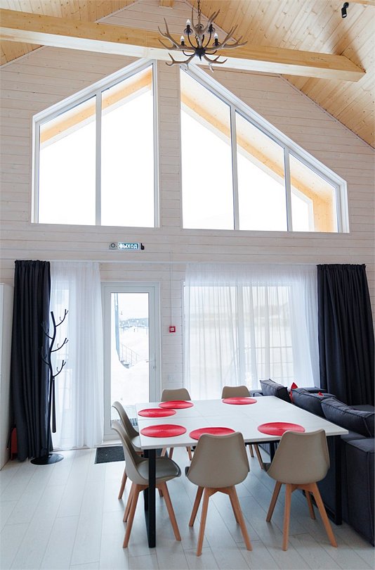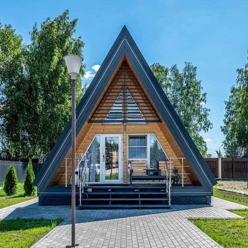 Уютный домик в стиле А-ФРЕЙМ с панорамным остеклением максимально комфортно позволяет разместить до четырех человек. Максимально возможное заселение — до шести человек.