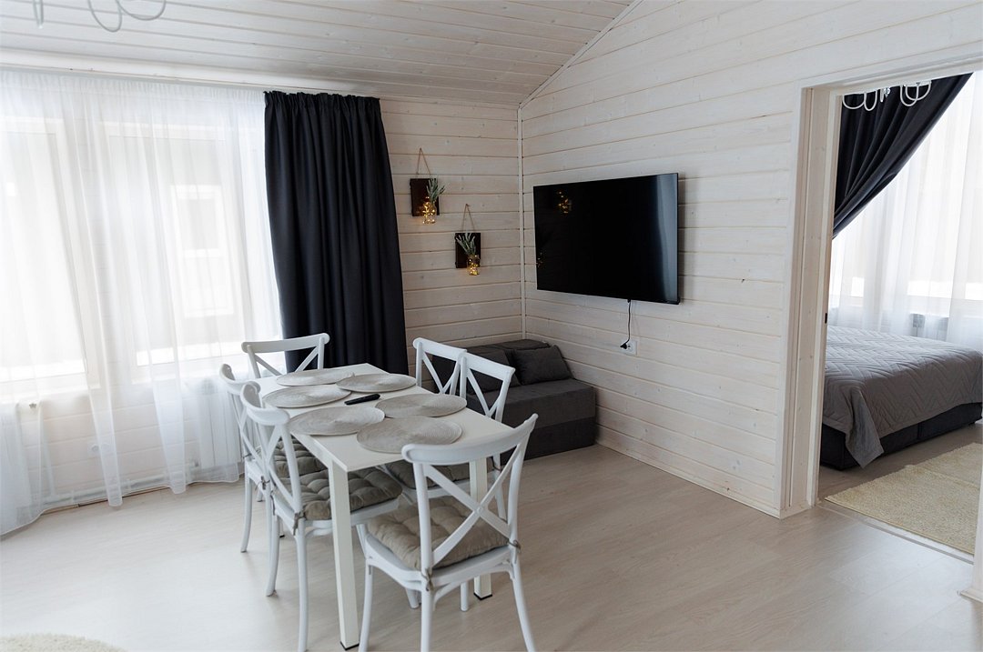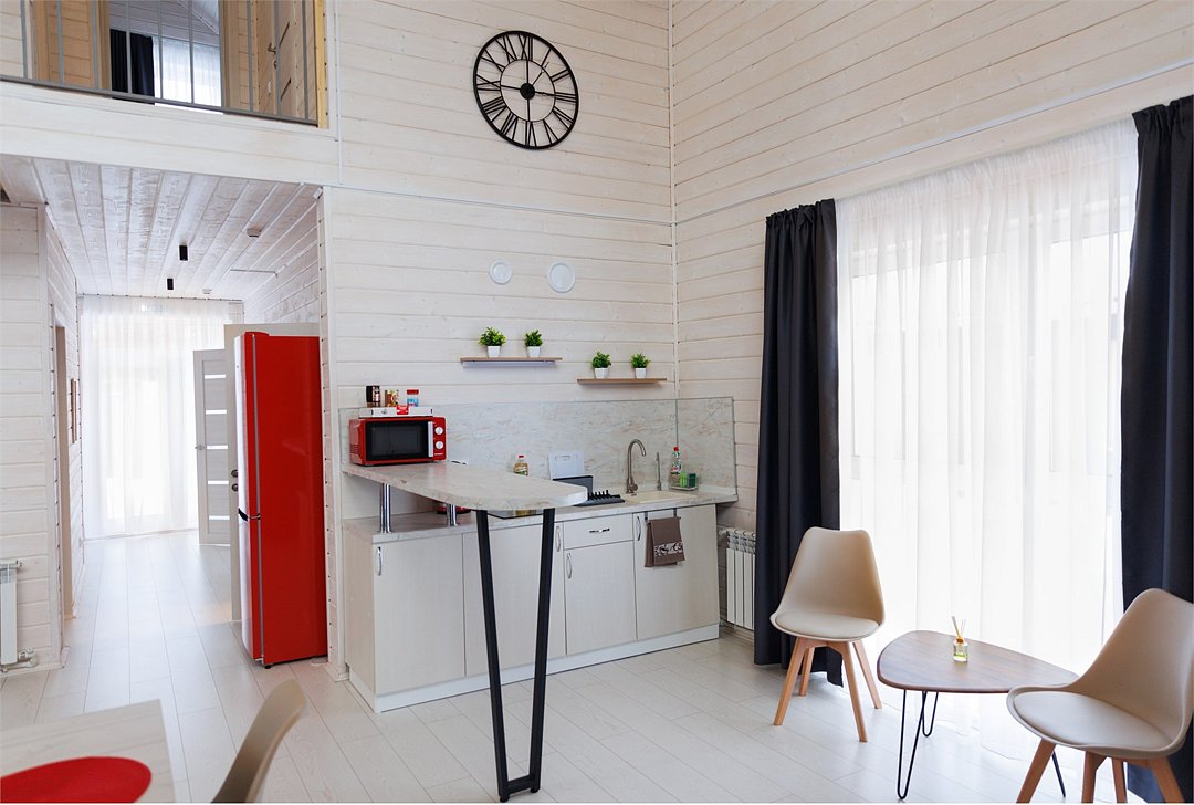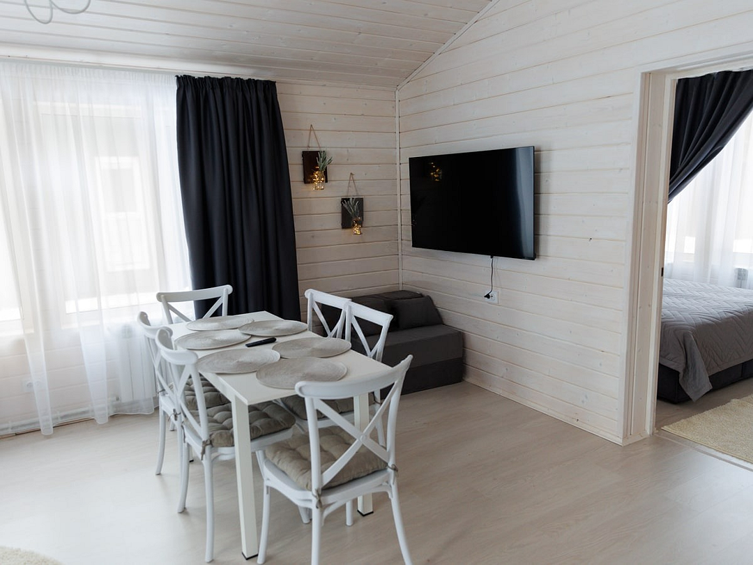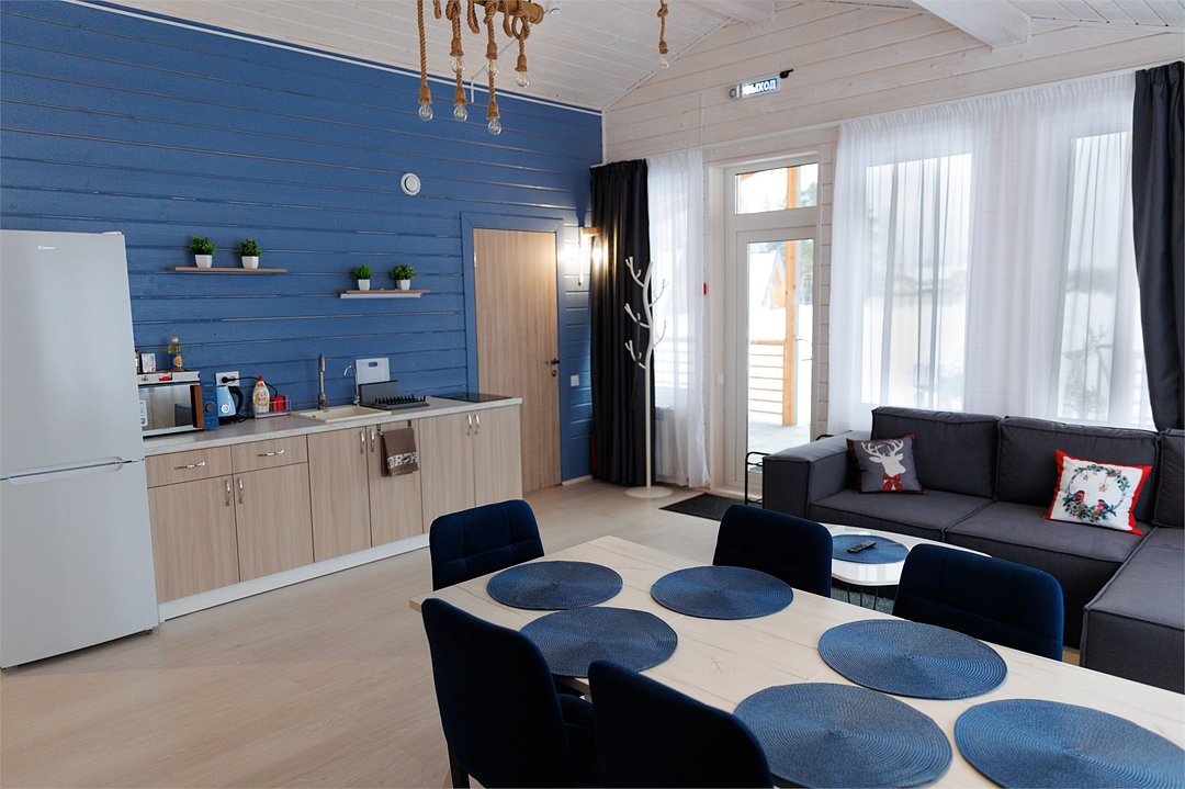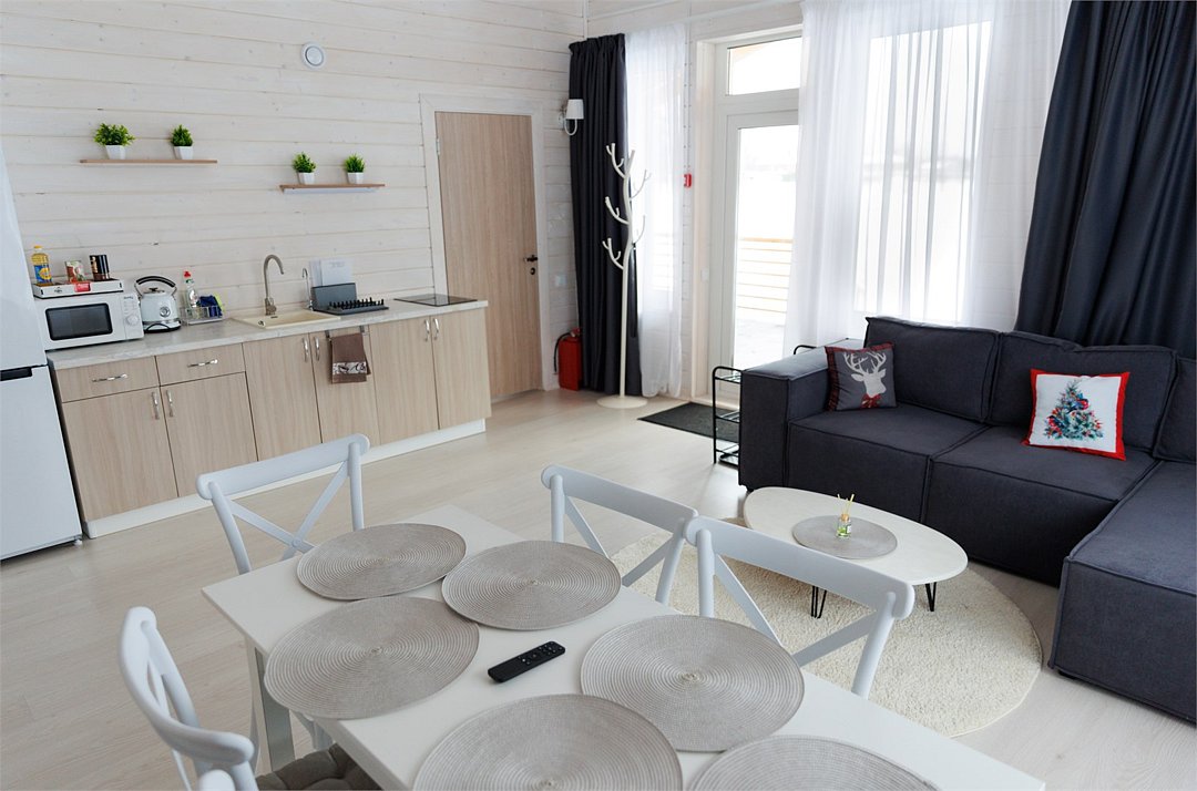 Путешествие с семьейХороший вариант отдыха.Очень удачное расположение, добраться от трассы легко, а шум города вообще не слышен. В домах чистота и уют, приятно находиться. Для детей есть масса развлечений - горка, каток, настольный теннис. Мы, взрослые, насладились тишиной, пока дети были заняты. Дом был с кухней, так что готовили сами, это оказалось очень удобно.