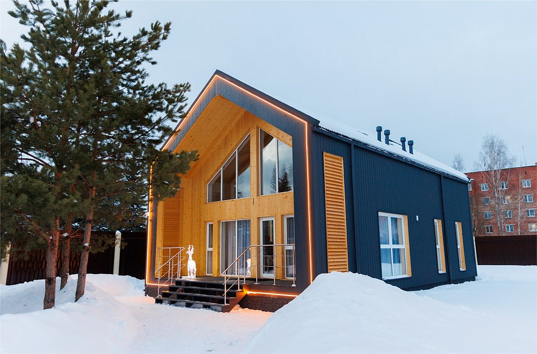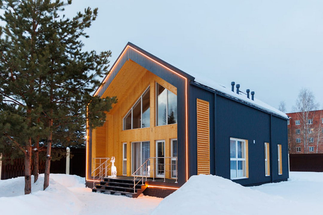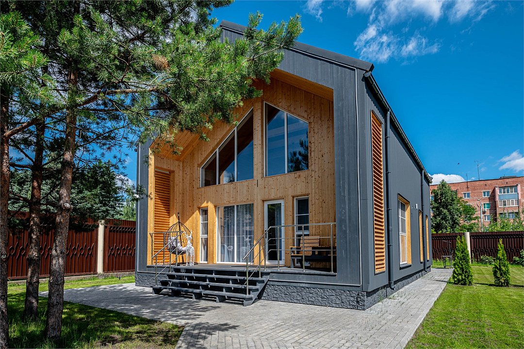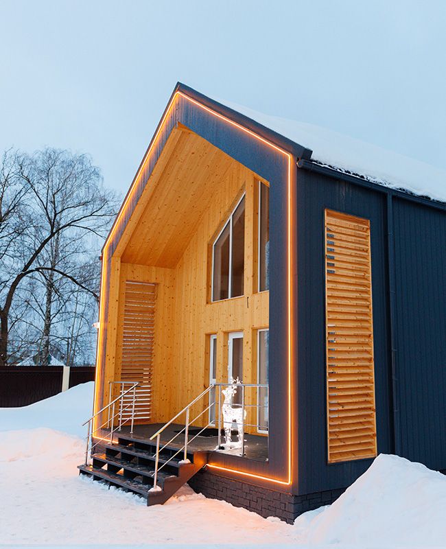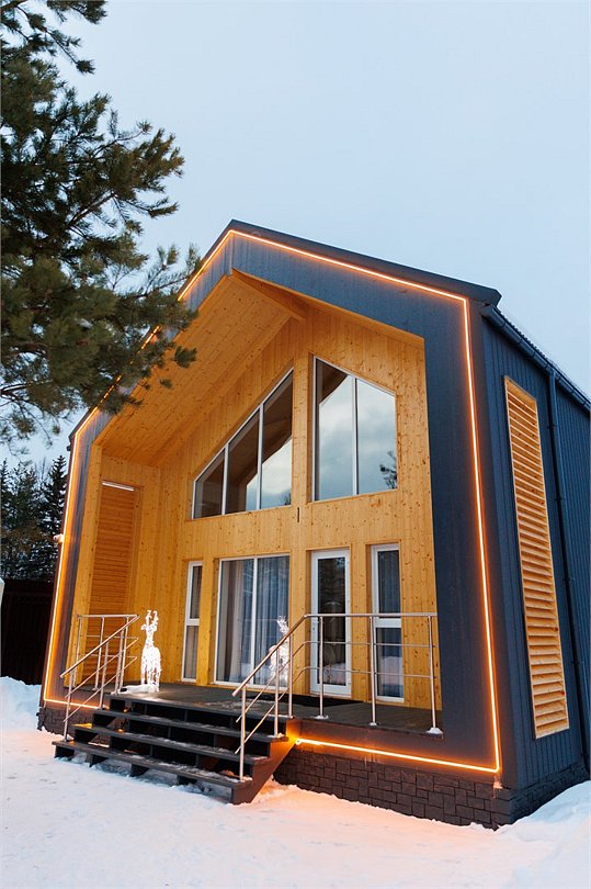 Отличительной особенностью этого дома является сауна, которая находится прямо внутри дома. «Модуль-Дом» оформлен в стиле минимализма с использованием натуральных материалов, что создает атмосферу умиротворения и спокойствия.