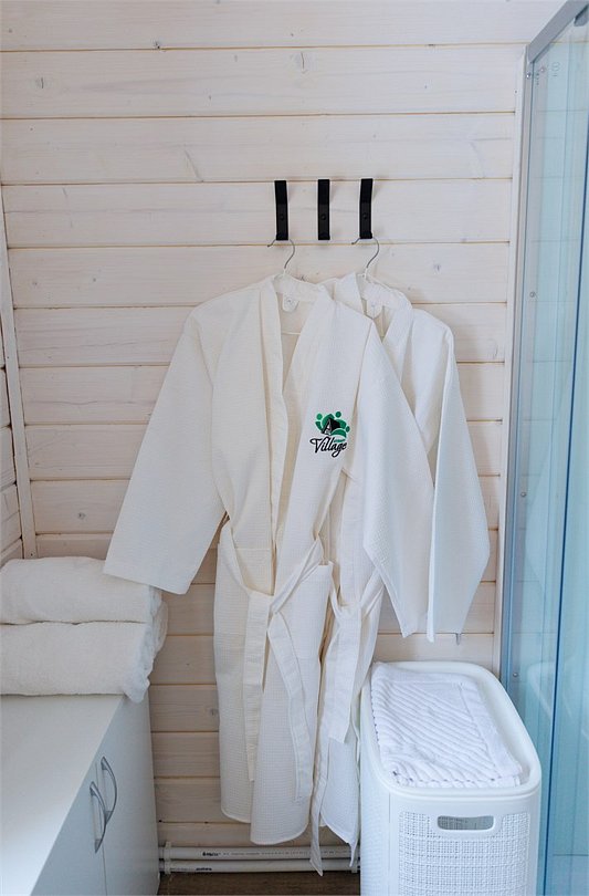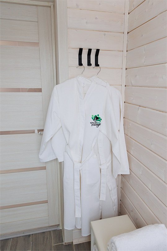 В домике одна двуспальная или две односпальные кровати. Для Вашего удобства, Вы можете дополнительно заказать завтрак в номер, тапочки, халаты, зубной набор, бритвенные принадлежности, чай, кофе, сахар, а также решетки и шампура.