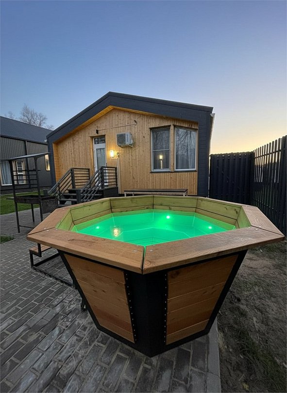 Романтичный эко-домик с панорамными окнами, верандой и мангальной зоной. 35 м² уюта, где всё продумано для отдыха пары, семьи или компании до 6 человек. 4 человека (основной тариф) + 2 человека (за дополнительную плату). В доме: кухня-гостиная, спальня, посуда, кондиционер, отопление. Мангал и шампуры — бесплатно Можно с питомцем до 3,5 кг за дополнительную плату (лежанка, миска, лоток). Дети до 3 лет — бесплатно без предоставления места. Дополнительно: завтрак — 700 ₽, бассейн — 800 ₽/час, фитнес — 500 ₽. Цены и свободные даты — в календаре бронирования. Заезд с 15:00, выезд до 12:00 Мы уверены, что пребывание у нас станет незабываемым временем для всей вашей семьи и ваших друзей!Услуги и удобства