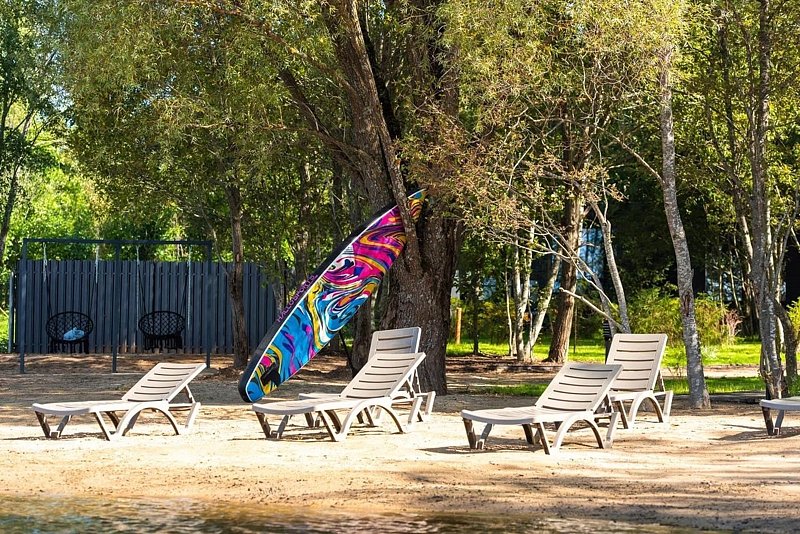 В распоряжении гостей собственный пляж с удобными лежаками и беседка с кальяном. Любителям активного отдыха доступны рыбалка, лодка и SUP-борды. Есть возможность совершить увлекательную велосипедную прогулку по живописным окрестностям.