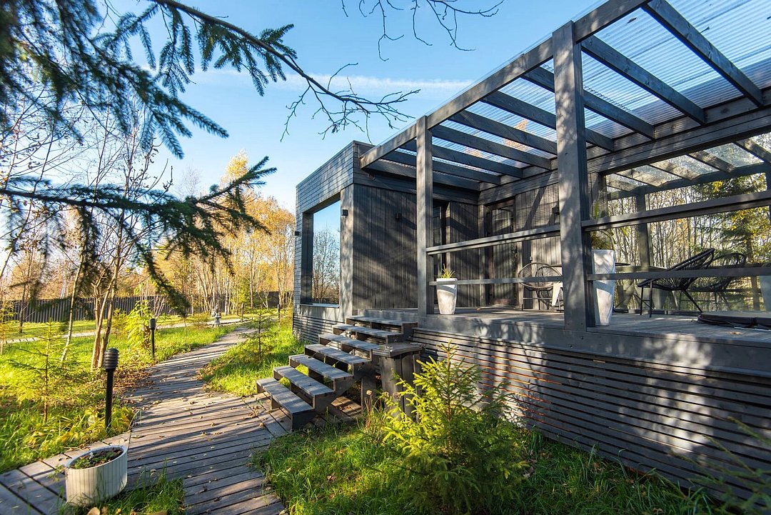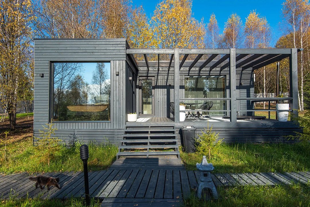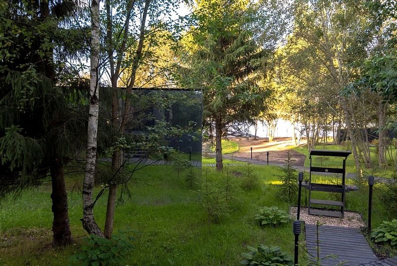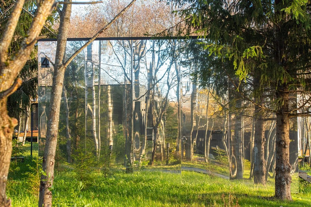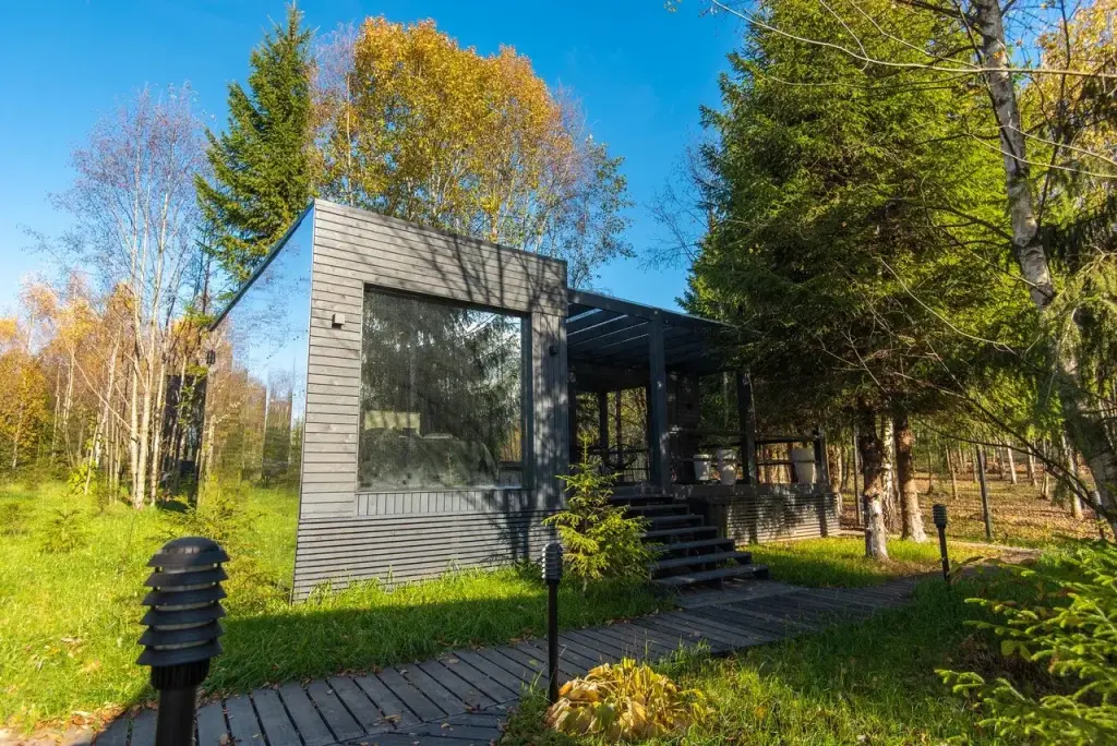 Зеркальный домик с панорамными окнами, террасой с теплой купелью, мангальной зоной на свежем воздухе — для романтического уик-энда, семейного отдыха или наедине с собой.