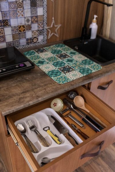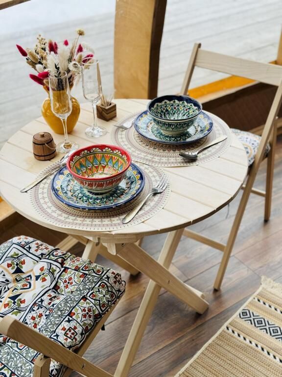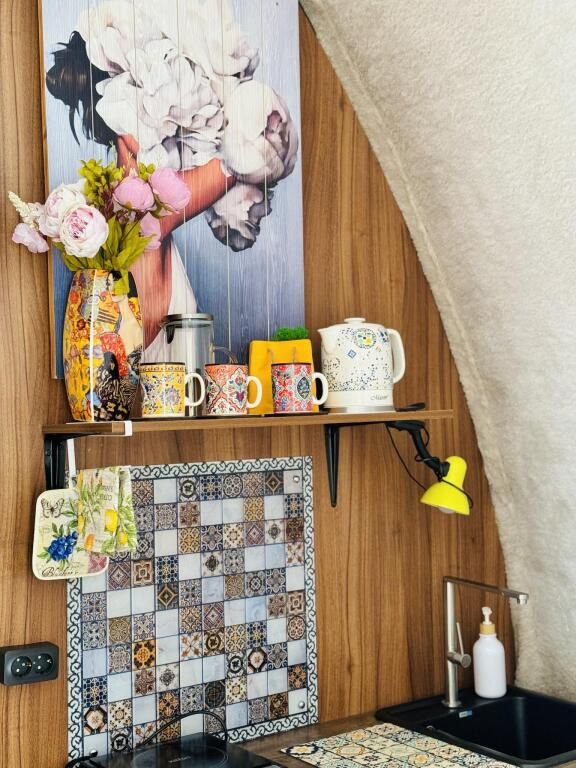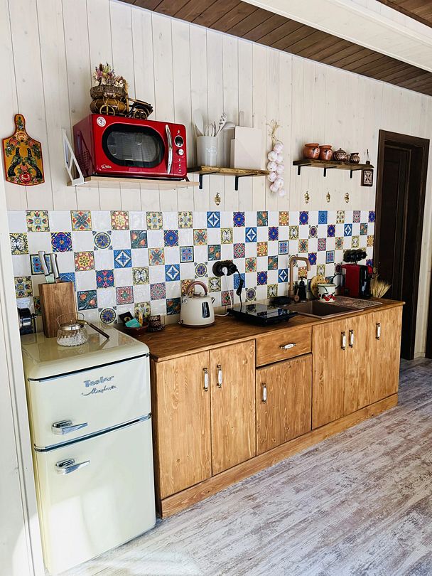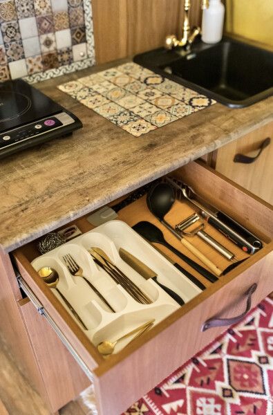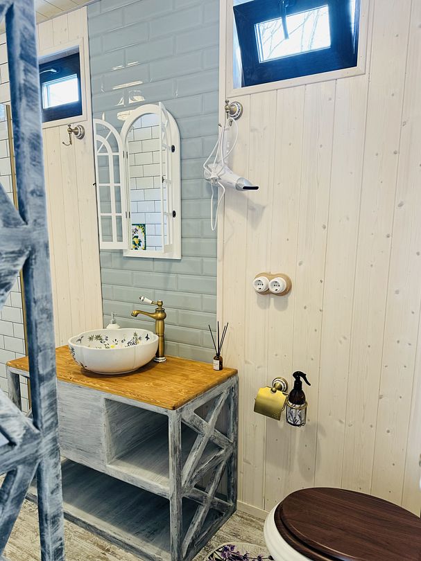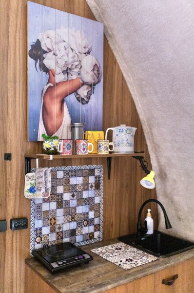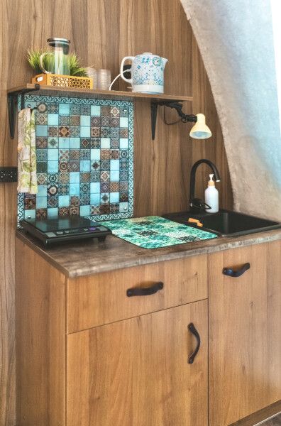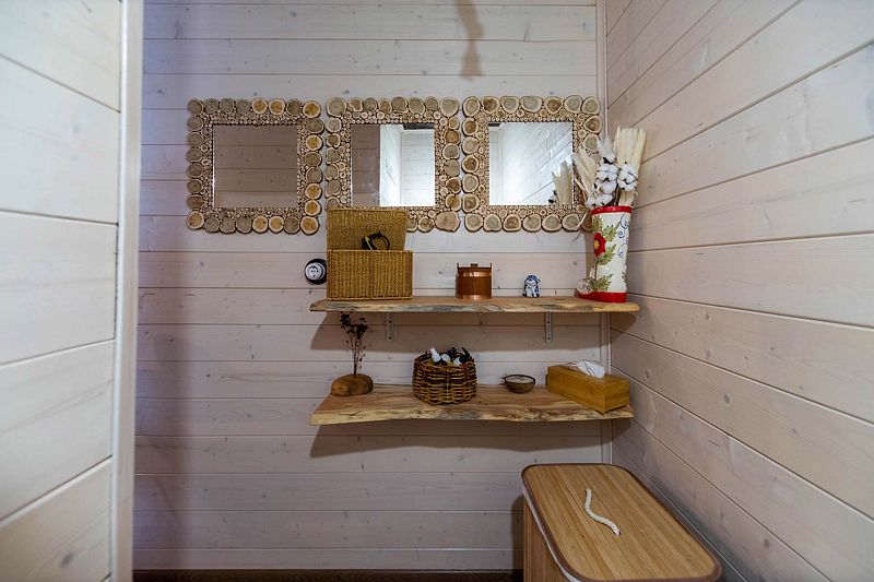 Модульный дом, площадью 21 кв.м., рассчитанный на комфортное размещение двух человек. Дизайн интерьера выполнен в восточном стиле: ручная роспись, мозаика, красочные орнаменты и предметы интерьера из Марокко и Ирана.