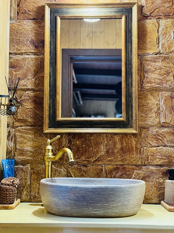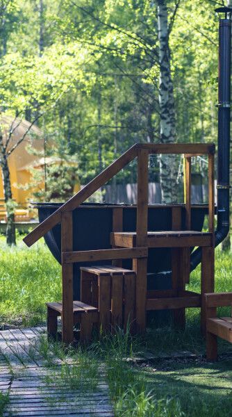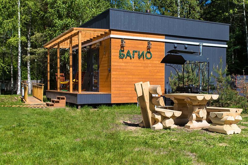 Баня расположена прямо на берегу небольшого, но очень живописного пруда. В стоимость входит посещение бани для четырех человек. Каждый дополнительный гость оплачивается отдельно, стоимость — 2000 ₽ с человека. Максимальная вместимость бани единовременно — 6 человек.