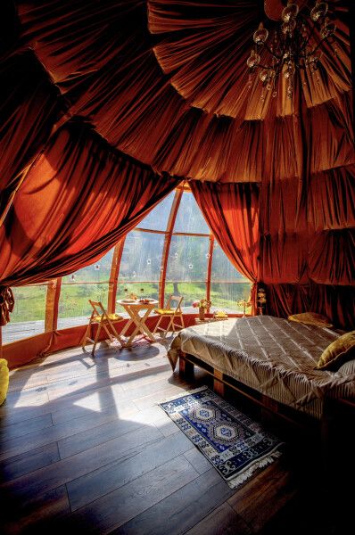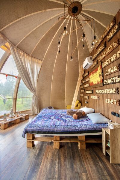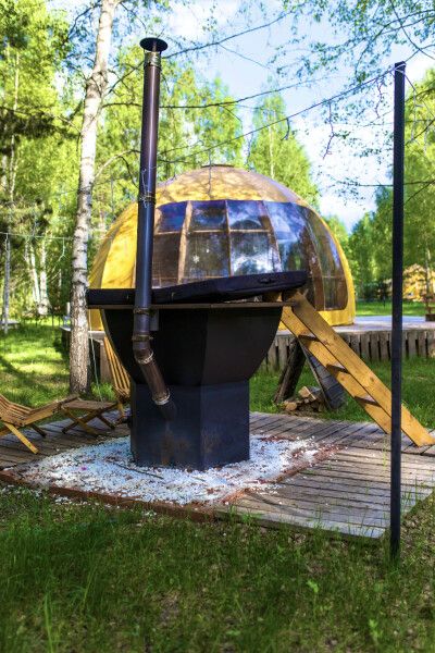 Также у сферы есть второй ярус, на котором может с комфортом разместиться ребенок. А еще горячие ванны под открытым небом (не включены в стоимость проживания).