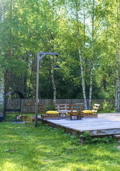 У дома есть огромная терраса с уличной мебелью, с собственной мангальной зоной и банным чаном.